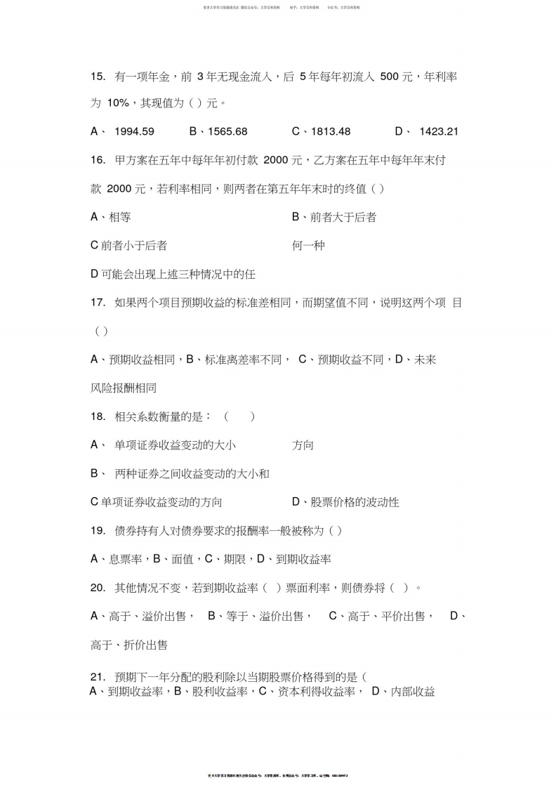 公司金融试题及答案猴哥6个月前发布关注私信5.70MB22页05024公司金融试题及答案此内容为免费资源,请登录后查看¥0 登录查看免费资源 第1页 / 共22页 第2页 / 共22页 第3页 / 共22页 该文档为免费文档,您可直接下载完整版进行阅读 © 版权声明文章版权归作者所有,未经允许请勿转载。THE END《公司金融》学习资料合集 期末复习 喜欢就支持一下吧点赞24赞赏 分享QQ空间微博QQ好友海报分享复制链接收藏