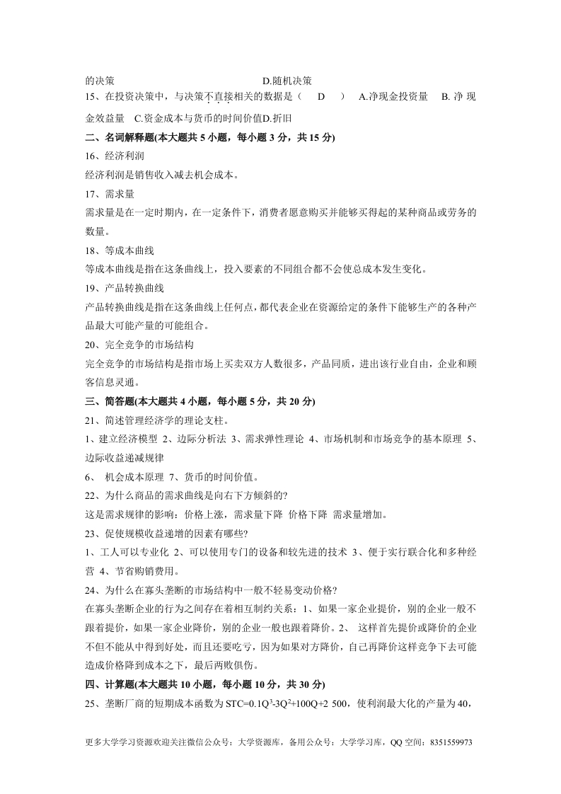 管理经济学试题及答案猴哥6个月前发布关注私信50.50KB4页03236管理经济学试题及答案此内容为免费资源,请登录后查看¥0 登录查看免费资源 第1页 / 共4页 第2页 / 共4页 第3页 / 共4页 该文档为免费文档,您可直接下载完整版进行阅读 © 版权声明文章版权归作者所有,未经允许请勿转载。THE END《管理经济学》学习资料合集 期末复习 喜欢就支持一下吧点赞36赞赏 分享QQ空间微博QQ好友海报分享复制链接收藏