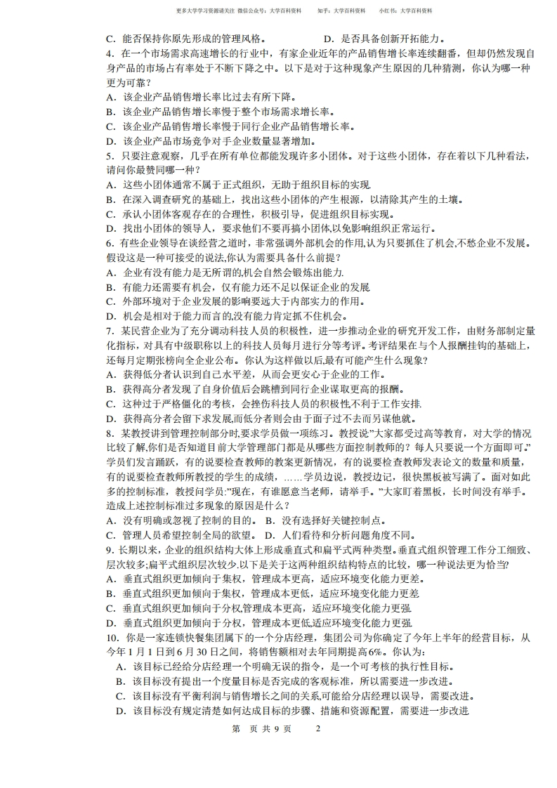 管理学期末考试题A及答案猴哥6个月前发布关注私信0.63MB9页07314管理学期末考试题A及答案此内容为免费资源,请登录后查看¥0 登录查看免费资源 第1页 / 共9页 第2页 / 共9页 第3页 / 共9页 该文档为免费文档,您可直接下载完整版进行阅读 © 版权声明文章版权归作者所有,未经允许请勿转载。THE END《管理学》学习资料合集 期末复习 喜欢就支持一下吧点赞14赞赏 分享QQ空间微博QQ好友海报分享复制链接收藏