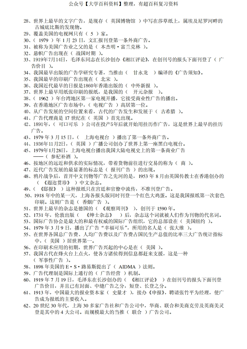 广告史期末作业(含答案)猴哥6个月前发布关注私信0.46MB6页04613广告史期末作业(含答案)此内容为免费资源,请登录后查看¥0 登录查看免费资源 第1页 / 共6页 第2页 / 共6页 第3页 / 共6页 该文档为免费文档,您可直接下载完整版进行阅读 © 版权声明文章版权归作者所有,未经允许请勿转载。THE END《广告史》学习资料合集 期末复习 喜欢就支持一下吧点赞13赞赏 分享QQ空间微博QQ好友海报分享复制链接收藏