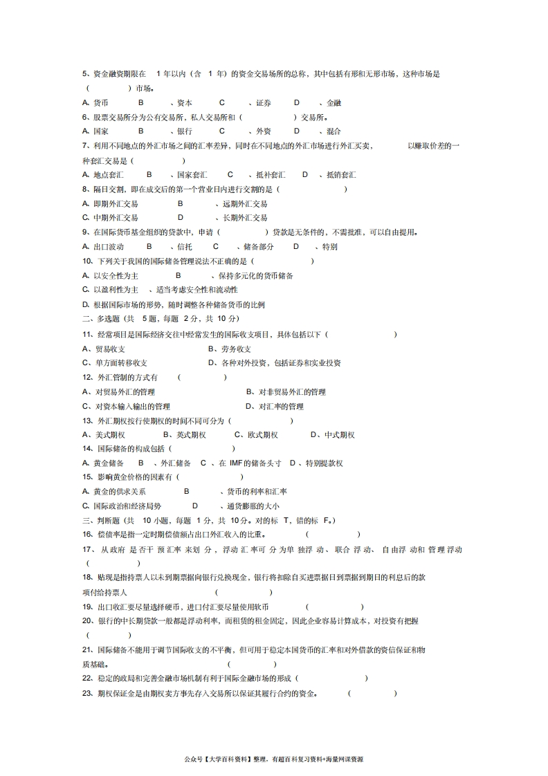 国际金融试卷及答案猴哥6个月前发布关注私信0.10MB7页06257国际金融试卷及答案此内容为免费资源,请登录后查看¥0 登录查看免费资源 第1页 / 共7页 第2页 / 共7页 第3页 / 共7页 该文档为免费文档,您可直接下载完整版进行阅读 © 版权声明文章版权归作者所有,未经允许请勿转载。THE END《国际金融》学习资料合集 期末复习 喜欢就支持一下吧点赞57赞赏 分享QQ空间微博QQ好友海报分享复制链接收藏