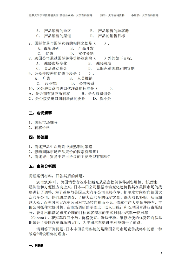 《国际市场营销》考试卷答案(期末复习材料)猴哥6个月前发布关注私信0.22MB6页08413《国际市场营销》考试卷答案(期末复习材料)此内容为免费资源,请登录后查看¥0 登录查看免费资源 第1页 / 共6页 第2页 / 共6页 第3页 / 共6页 该文档为免费文档,您可直接下载完整版进行阅读 © 版权声明文章版权归作者所有,未经允许请勿转载。THE END《国际市场营销》学习资料合集 期末复习 喜欢就支持一下吧点赞13赞赏 分享QQ空间微博QQ好友海报分享复制链接收藏