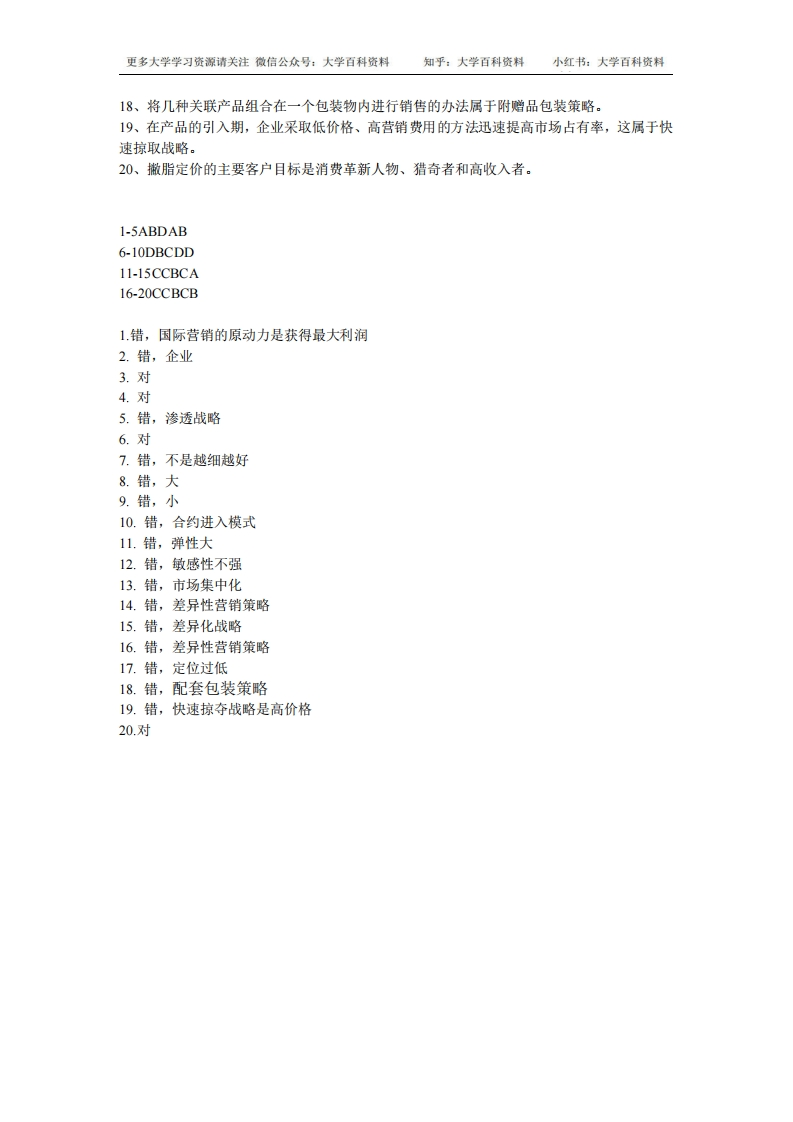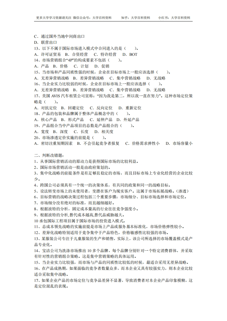 国际市场营销学期末考试题及答案猴哥6个月前发布关注私信0.31MB9页08255国际市场营销学期末考试题及答案此内容为免费资源,请登录后查看¥0 登录查看免费资源 第1页 / 共9页 第2页 / 共9页 第3页 / 共9页 该文档为免费文档,您可直接下载完整版进行阅读 © 版权声明文章版权归作者所有,未经允许请勿转载。THE END《国际市场营销》学习资料合集 期末复习 喜欢就支持一下吧点赞55赞赏 分享QQ空间微博QQ好友海报分享复制链接收藏