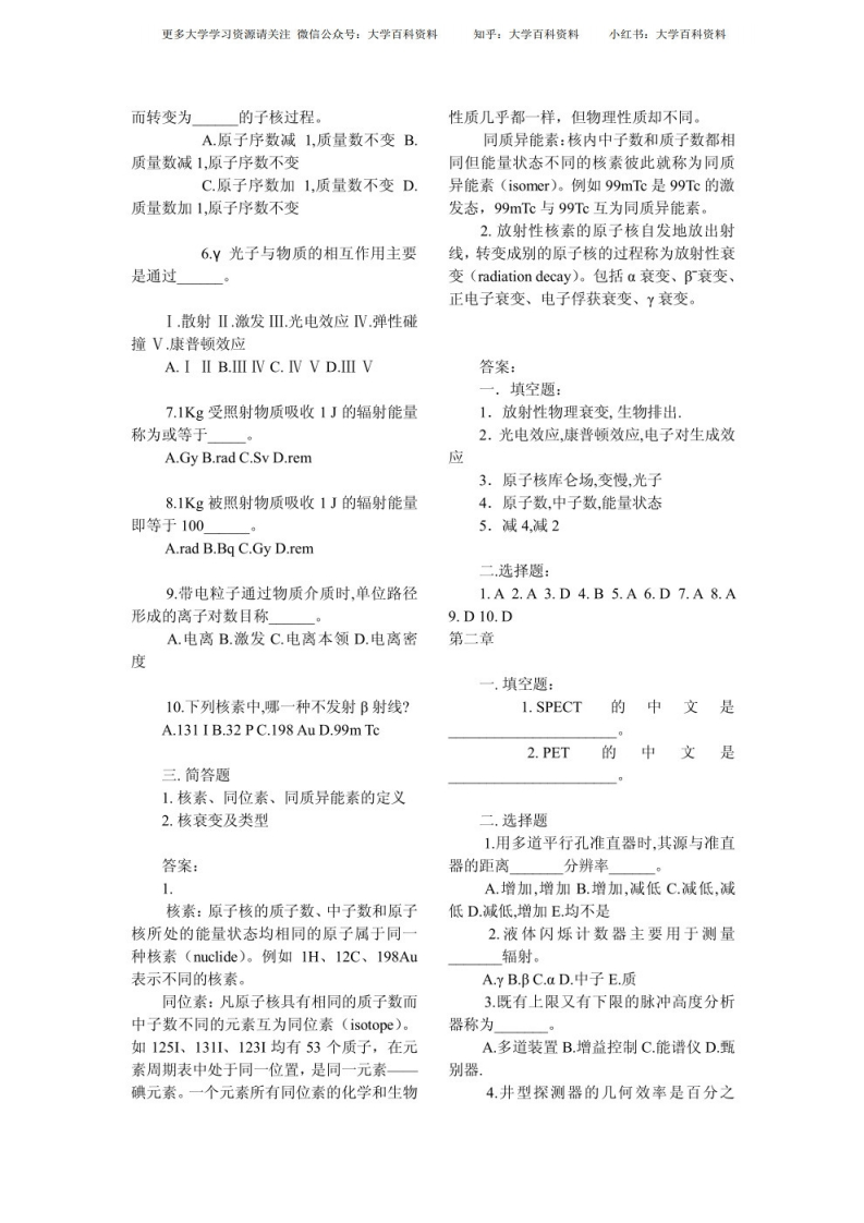 核医学试题及答案猴哥6个月前发布关注私信2.75MB12页08324核医学试题及答案此内容为免费资源,请登录后查看¥0 登录查看免费资源 第1页 / 共12页 第2页 / 共12页 第3页 / 共12页 该文档为免费文档,您可直接下载完整版进行阅读 © 版权声明文章版权归作者所有,未经允许请勿转载。THE END《核医学》学习资料合集 期末复习 喜欢就支持一下吧点赞24赞赏 分享QQ空间微博QQ好友海报分享复制链接收藏
