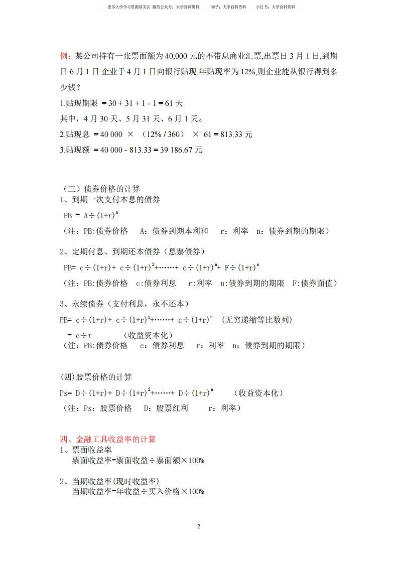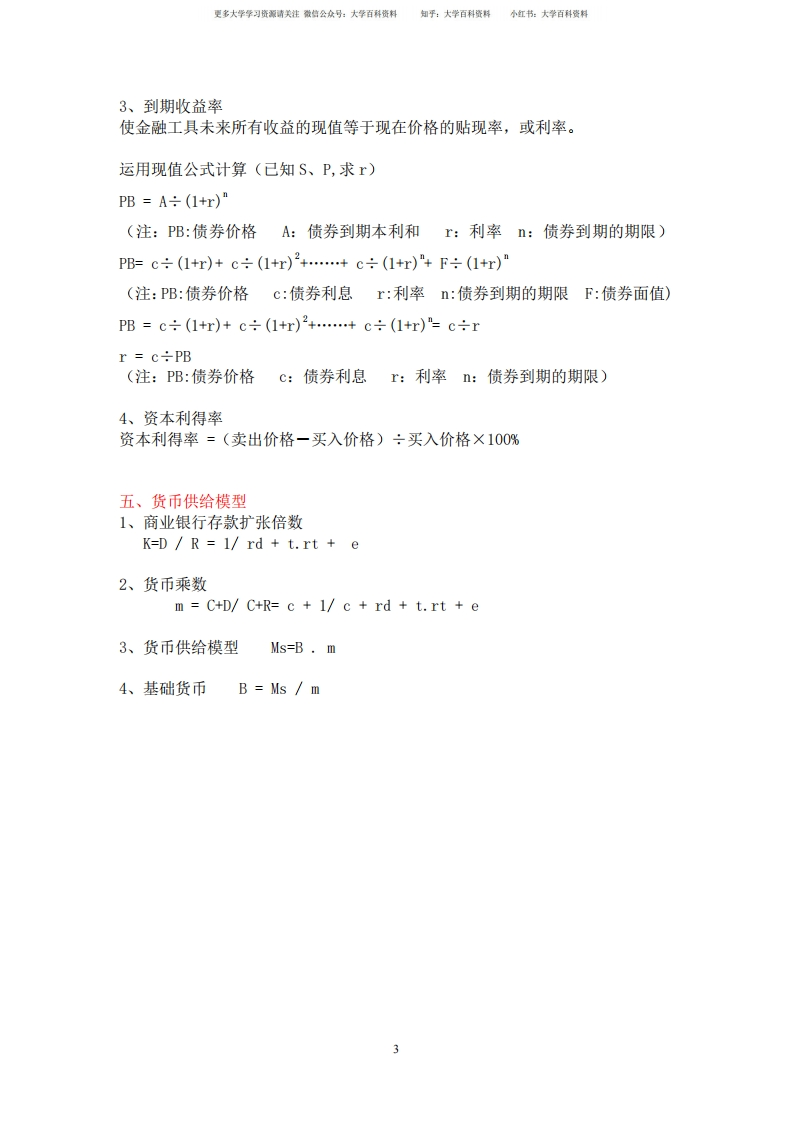 货币金融学常用计算公式猴哥6个月前发布关注私信0.10MB3页09022货币金融学常用计算公式此内容为免费资源,请登录后查看¥0 登录查看免费资源 第1页 / 共3页 第2页 / 共3页 第3页 / 共3页 已完成全部阅读,共3页 © 版权声明文章版权归作者所有,未经允许请勿转载。THE END《货币金融》学习资料合集 期末复习 喜欢就支持一下吧点赞22赞赏 分享QQ空间微博QQ好友海报分享复制链接收藏