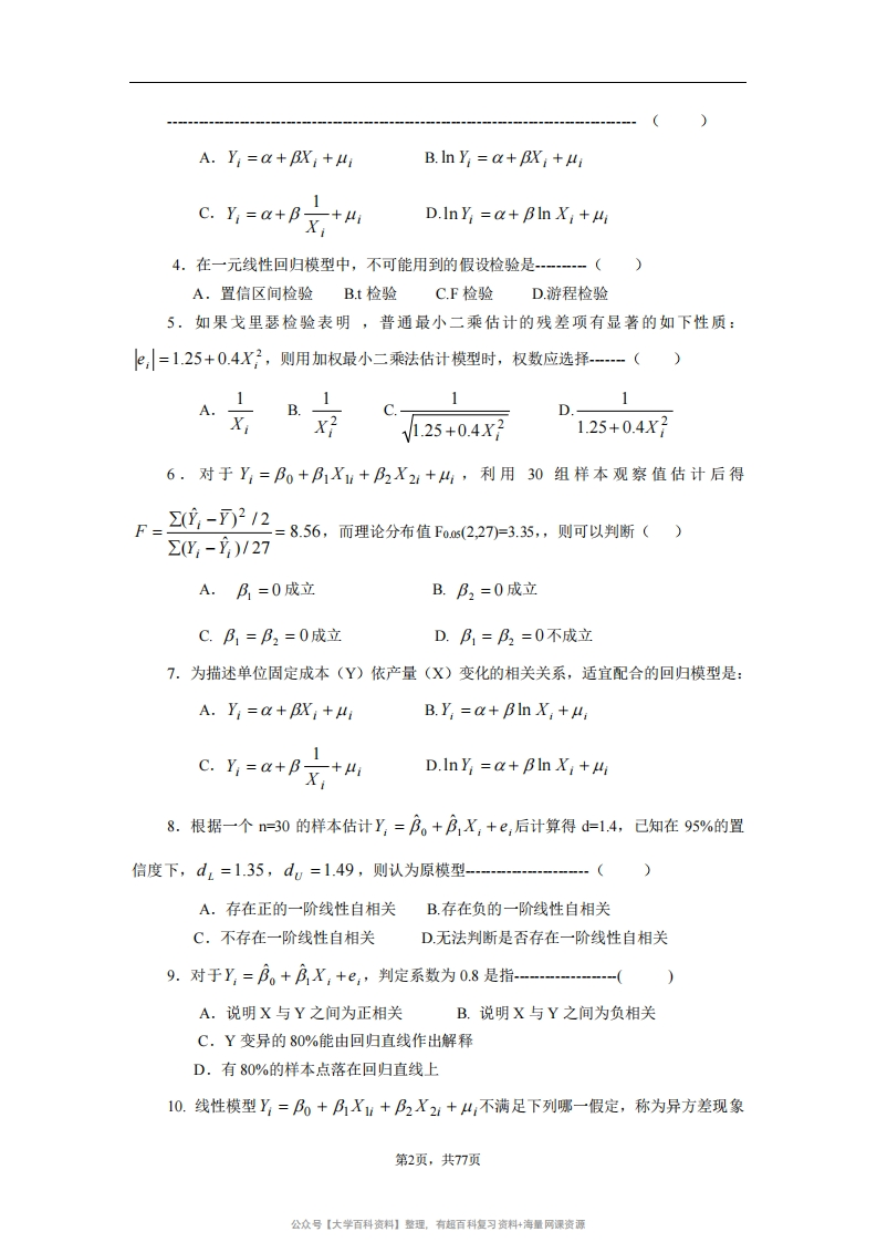 计量经济学练习题猴哥6个月前发布关注私信1.03MB77页06961计量经济学练习题此内容为免费资源,请登录后查看¥0 登录查看免费资源 第1页 / 共77页 第2页 / 共77页 第3页 / 共77页 该文档为免费文档,您可直接下载完整版进行阅读 © 版权声明文章版权归作者所有,未经允许请勿转载。THE END《计量经济学》学习资料合集 期末复习 喜欢就支持一下吧点赞61赞赏 分享QQ空间微博QQ好友海报分享复制链接收藏