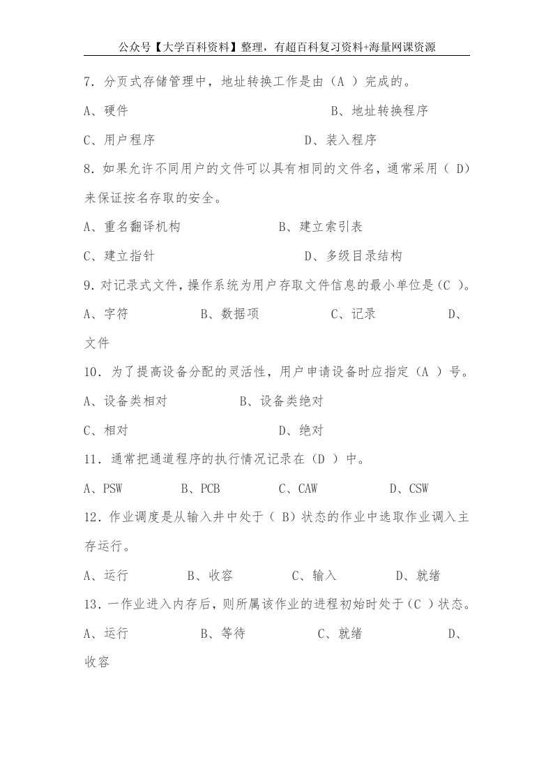 计算机操作系统试题及答案猴哥6个月前发布关注私信36KB9页09763计算机操作系统试题及答案此内容为免费资源,请登录后查看¥0 登录查看免费资源 第1页 / 共9页 第2页 / 共9页 第3页 / 共9页 该文档为免费文档,您可直接下载完整版进行阅读 © 版权声明文章版权归作者所有,未经允许请勿转载。THE END《计算机操作系统》学习资料合集 期末复习 喜欢就支持一下吧点赞63赞赏 分享QQ空间微博QQ好友海报分享复制链接收藏
