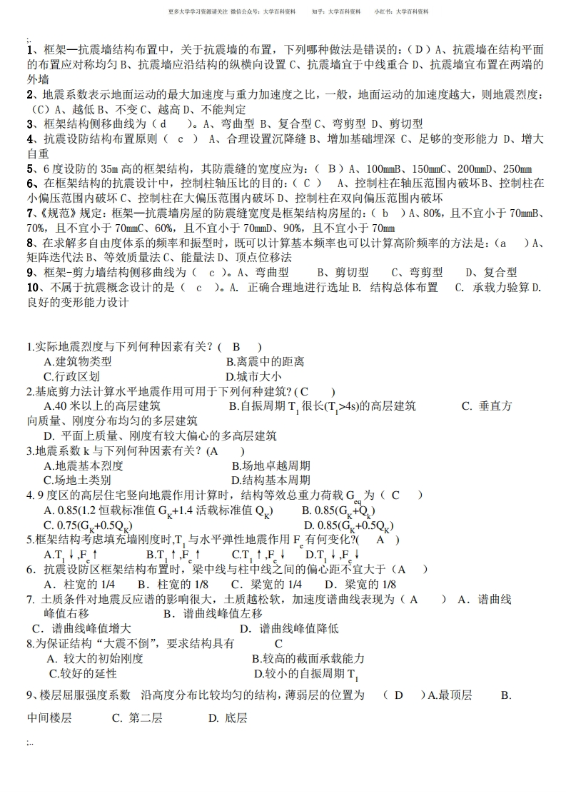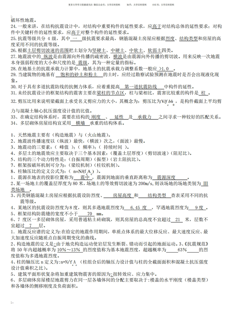 建筑结构抗震设计期末考试习题全集猴哥6个月前发布关注私信2.05MB34页09318建筑结构抗震设计期末考试习题全集此内容为免费资源,请登录后查看¥0 登录查看免费资源 第1页 / 共34页 第2页 / 共34页 第3页 / 共34页 该文档为免费文档,您可直接下载完整版进行阅读 © 版权声明文章版权归作者所有,未经允许请勿转载。THE END《建筑抗震设计》学习资料合集 期末复习 喜欢就支持一下吧点赞18赞赏 分享QQ空间微博QQ好友海报分享复制链接收藏