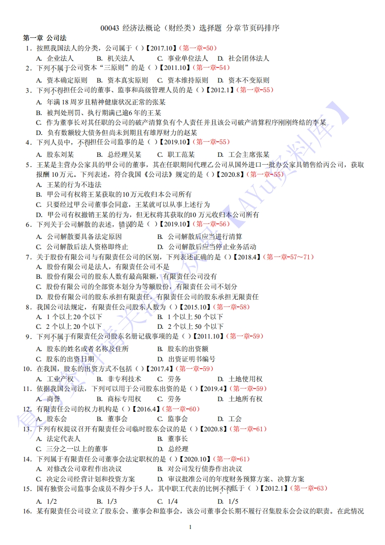 【2010-2020年历年真题分章节汇总】00043经济法概论01-学习资源网 - 分享优质学习资料