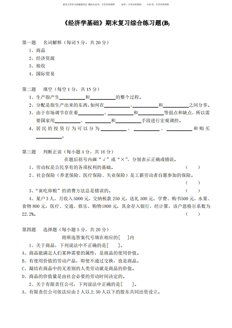 《经济学基础》期末复习综合练习题及答案-学习资源网 - 分享优质学习资料