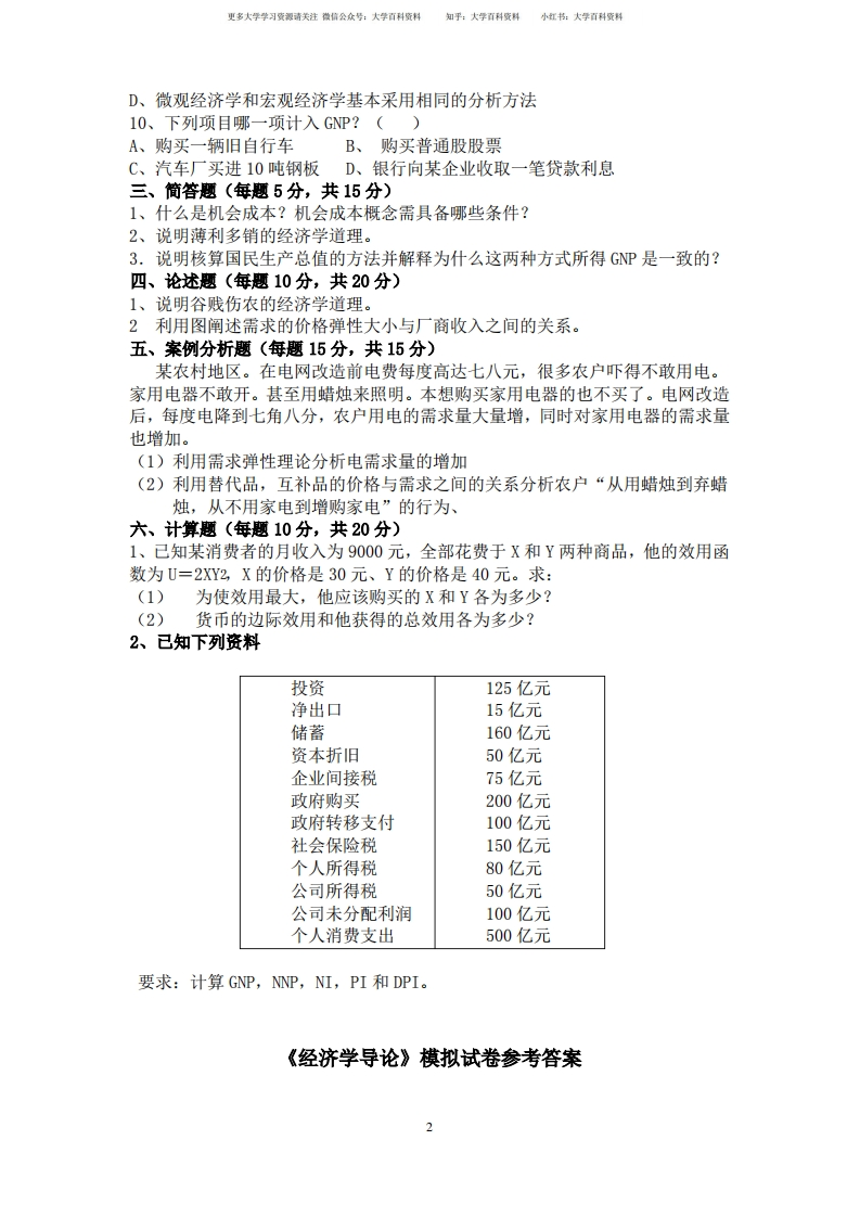 经济学导论模拟试卷及答案-学习资源网 - 分享优质学习资料