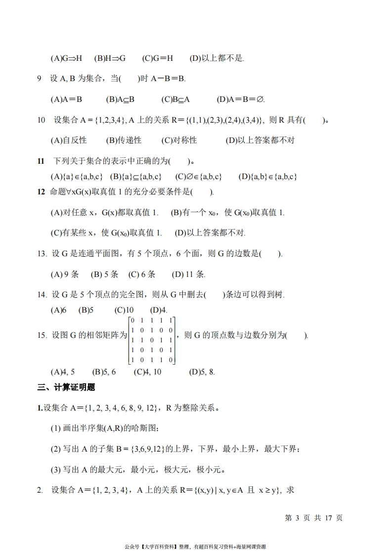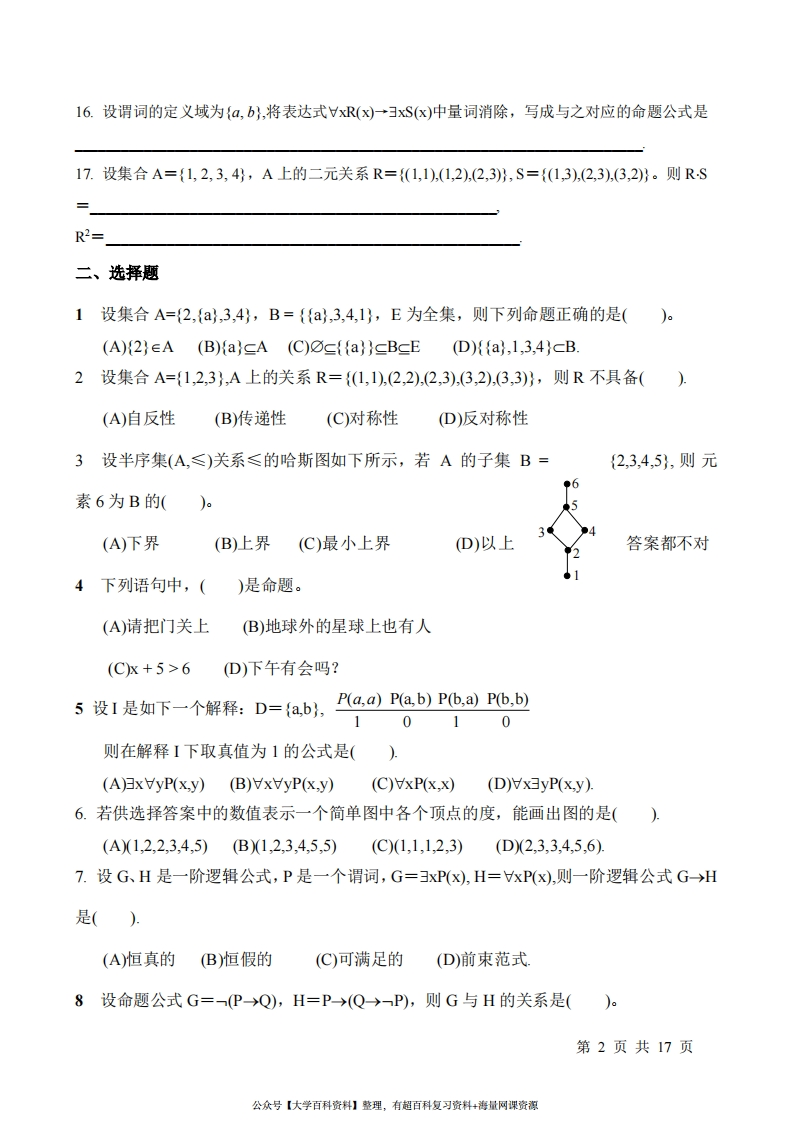 离散数学试题及答案猴哥6个月前发布关注私信0.48MB17页07455离散数学试题及答案此内容为免费资源,请登录后查看¥0 登录查看免费资源 第1页 / 共17页 第2页 / 共17页 第3页 / 共17页 该文档为免费文档,您可直接下载完整版进行阅读 © 版权声明文章版权归作者所有,未经允许请勿转载。THE END《离散数学》学习资料合集 期末复习 喜欢就支持一下吧点赞55赞赏 分享QQ空间微博QQ好友海报分享复制链接收藏