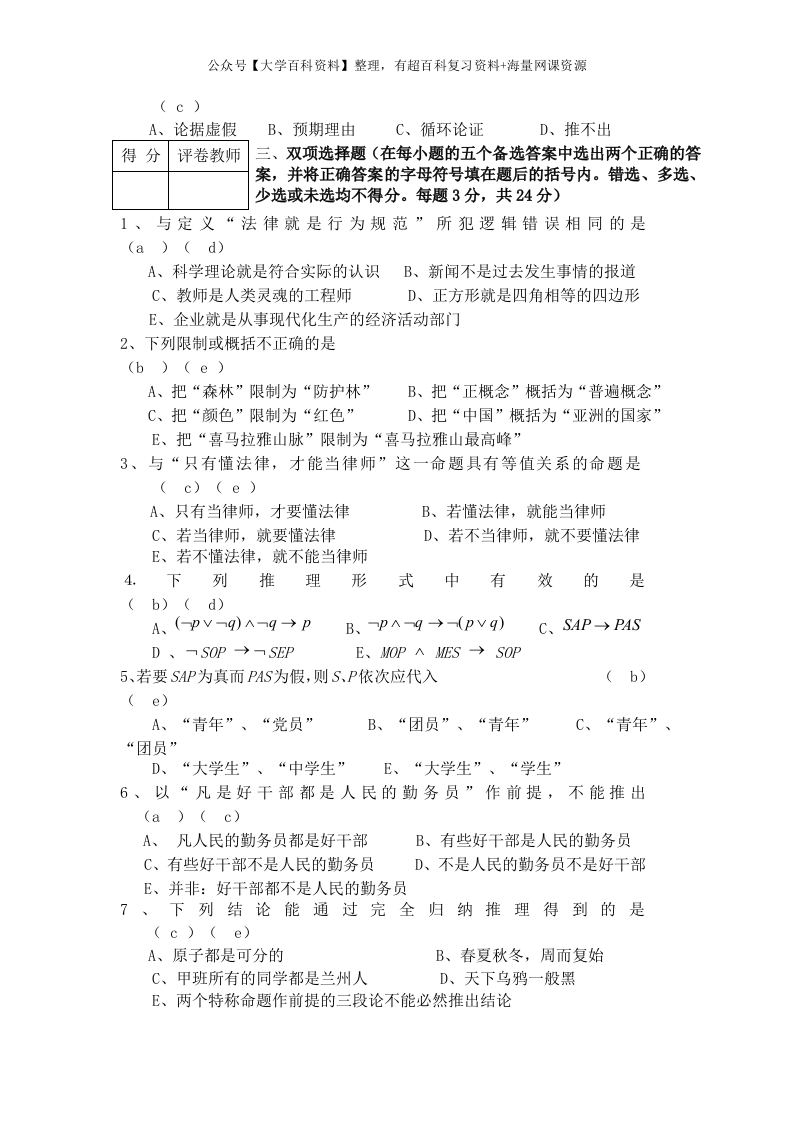 《逻辑学》模拟试题及答案-学习资源网 - 分享优质学习资料