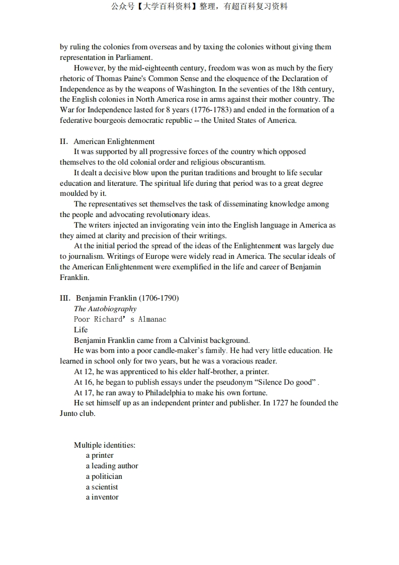 (完整版)美国文学史-知识点梳理猴哥6个月前发布关注私信2.38MB62页06649(完整版)美国文学史-知识点梳理此内容为免费资源,请登录后查看¥0 登录查看免费资源 第1页 / 共62页 第2页 / 共62页 第3页 / 共62页 该文档为免费文档,您可直接下载完整版进行阅读 © 版权声明文章版权归作者所有,未经允许请勿转载。THE END《美国文学史》学习资料合集 期末复习 喜欢就支持一下吧点赞49赞赏 分享QQ空间微博QQ好友海报分享复制链接收藏