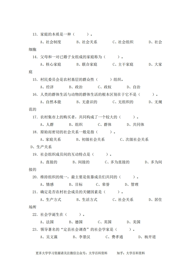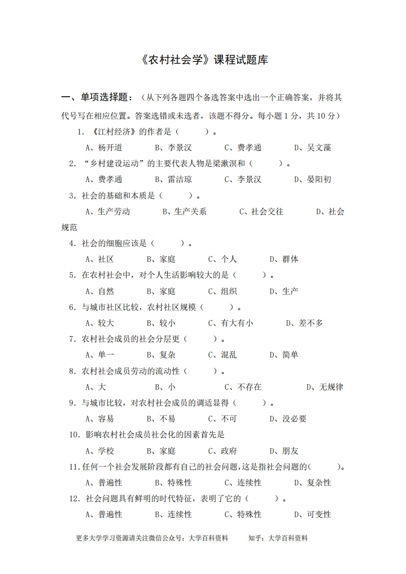 《农村社会学》课程试题库-学习资源网 - 分享优质学习资料