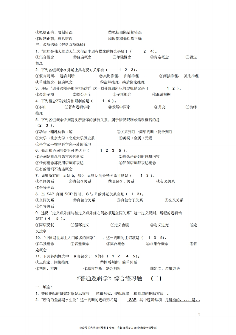 《普通逻辑学》考试样题及答案-学习资源网 - 分享优质学习资料
