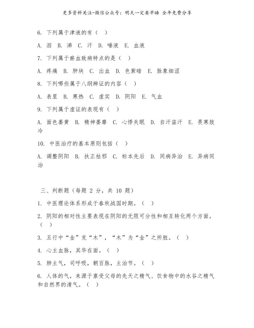 《中医学概论》期末考试题库及答案–【6页】猴哥6个月前发布关注私信3.34MB6页05424《中医学概论》期末考试题库及答案–【6页】此内容为免费资源,请登录后查看¥0 登录查看免费资源 第1页 / 共6页 第2页 / 共6页 第3页 / 共6页 该文档为免费文档,您可直接下载完整版进行阅读 © 版权声明文章版权归作者所有,未经允许请勿转载。THE END《中医学概论》学习资料合集 期末复习 喜欢就支持一下吧点赞24赞赏 分享QQ空间微博QQ好友海报分享复制链接收藏