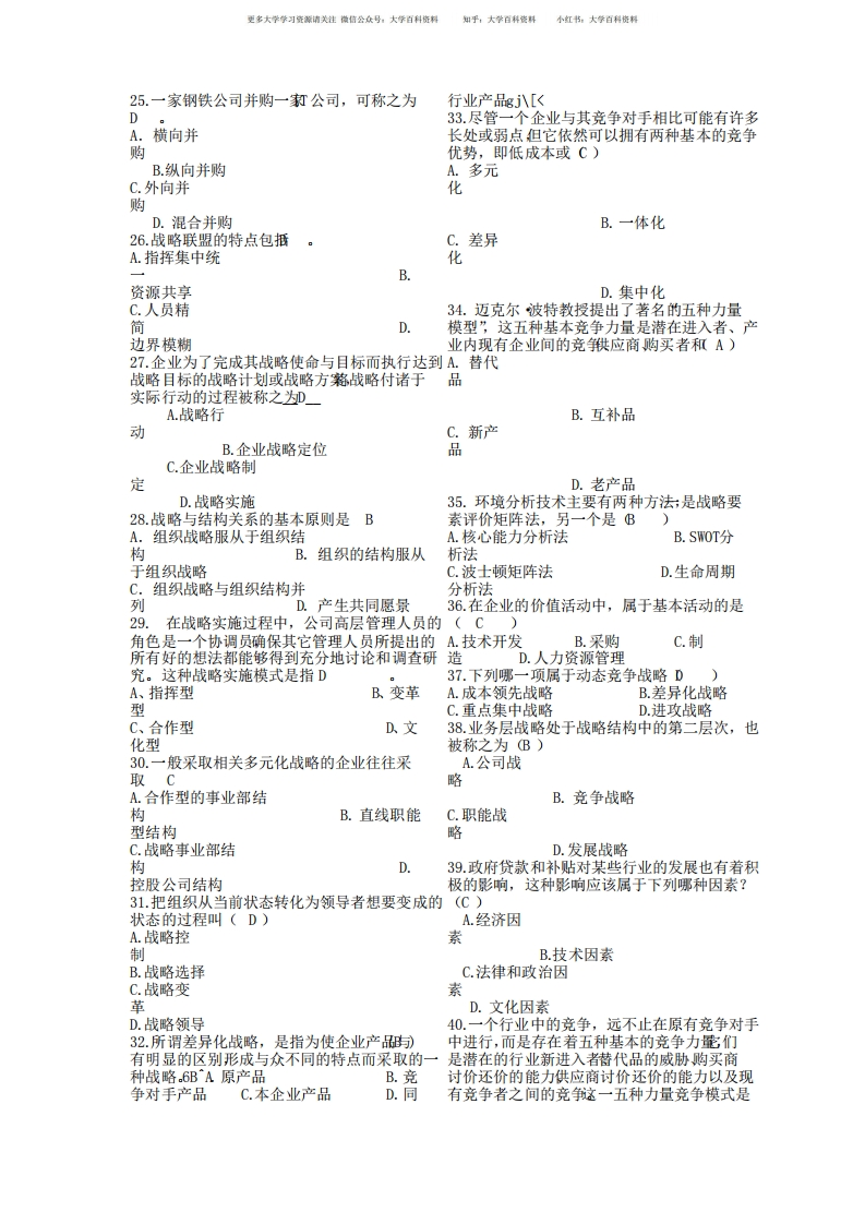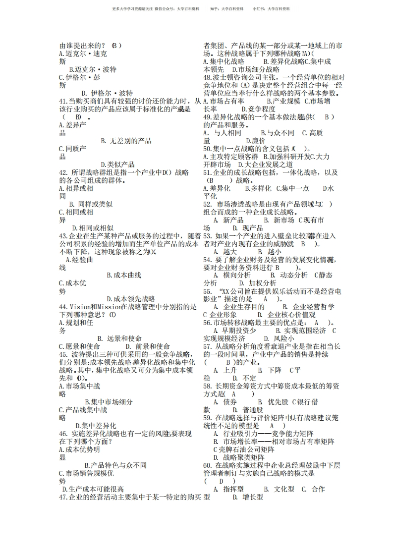 企业战略管理期末考试试题及答案猴哥6个月前发布关注私信0.20MB3页07245企业战略管理期末考试试题及答案此内容为免费资源,请登录后查看¥0 登录查看免费资源 第1页 / 共3页 第2页 / 共3页 第3页 / 共3页 已完成全部阅读,共3页 © 版权声明文章版权归作者所有,未经允许请勿转载。THE END《企业战略管理》学习资料合集 期末复习 喜欢就支持一下吧点赞45赞赏 分享QQ空间微博QQ好友海报分享复制链接收藏