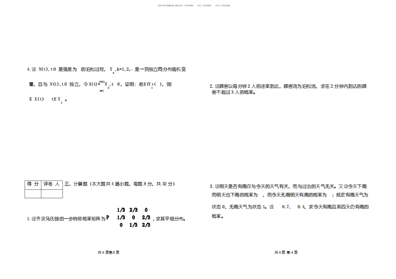 2017-2018期末随机过程试题及答案猴哥6个月前发布关注私信0.13MB5页091602017-2018期末随机过程试题及答案此内容为免费资源,请登录后查看¥0 登录查看免费资源 第1页 / 共5页 第2页 / 共5页 第3页 / 共5页 该文档为免费文档,您可直接下载完整版进行阅读 © 版权声明文章版权归作者所有,未经允许请勿转载。THE END《随机过程》学习资料合集 期末复习 喜欢就支持一下吧点赞60赞赏 分享QQ空间微博QQ好友海报分享复制链接收藏