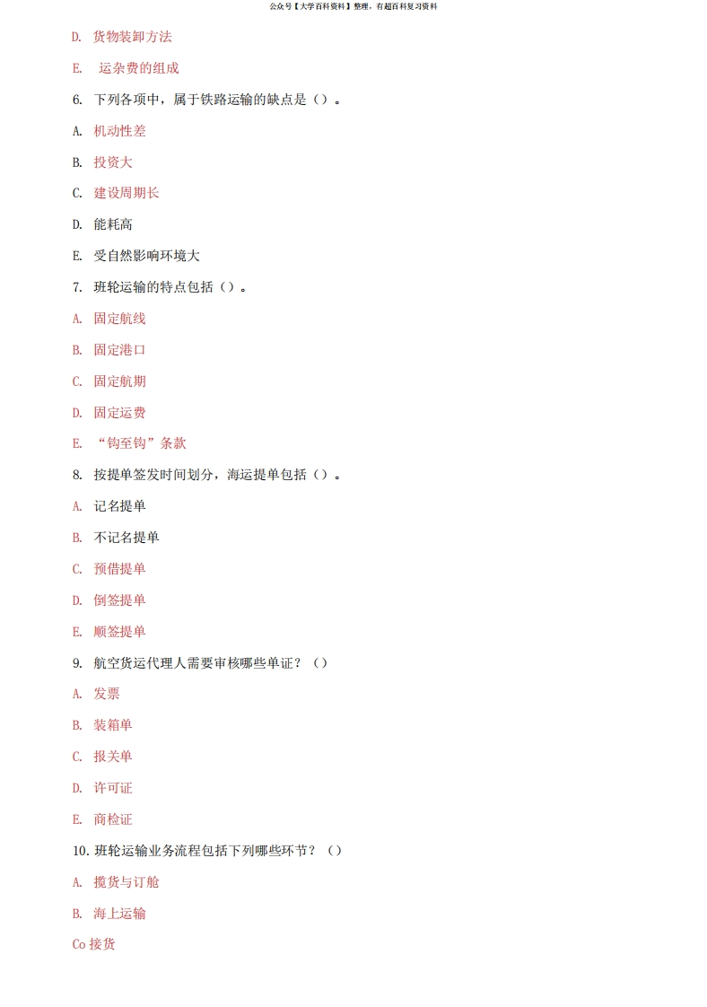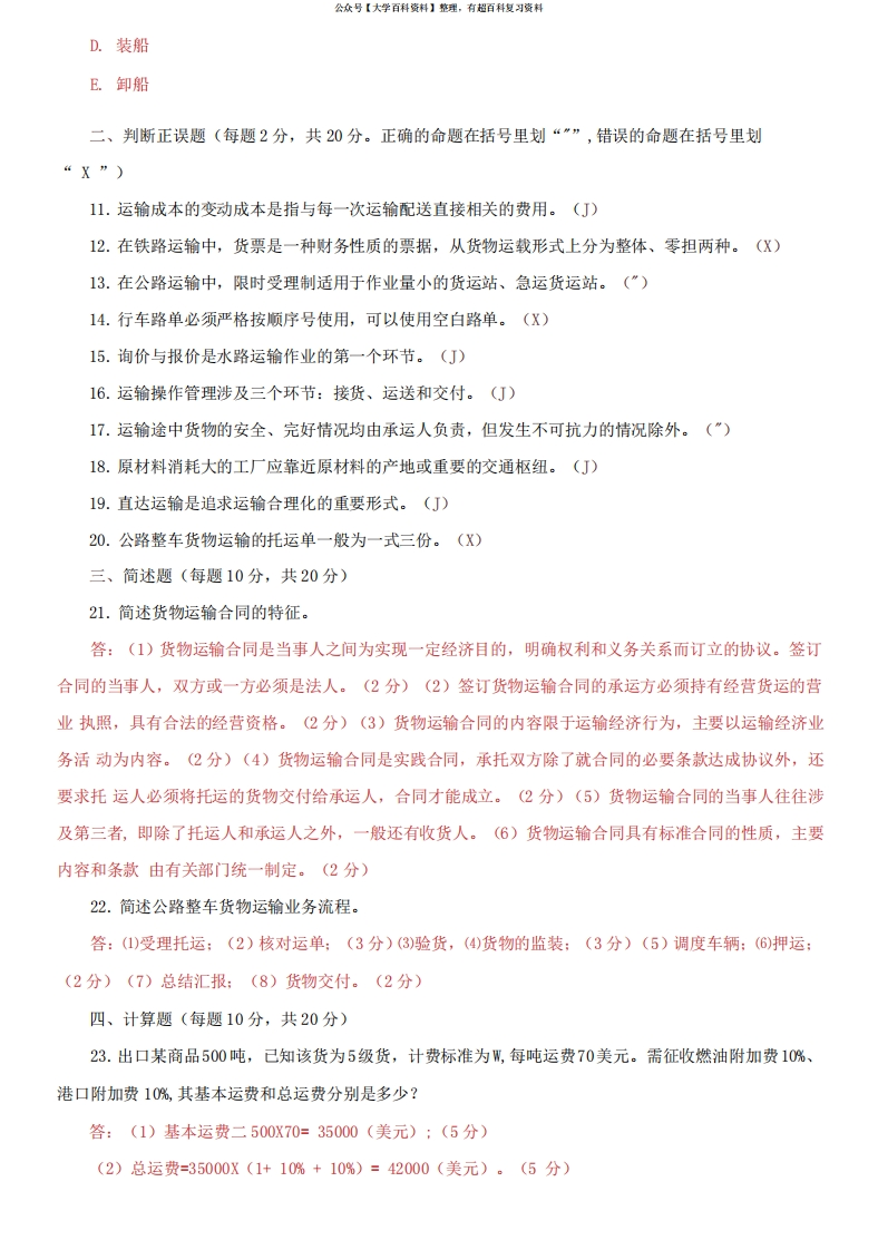 国家开放大学电大本科《铁运输道收入管理》2023-2024期末试题及答案猴哥6个月前发布关注私信0.17MB4页09624国家开放大学电大本科《铁运输道收入管理》2023-2024期末试题及答案此内容为免费资源,请登录后查看¥0 登录查看免费资源 第1页 / 共4页 第2页 / 共4页 第3页 / 共4页 该文档为免费文档,您可直接下载完整版进行阅读 © 版权声明文章版权归作者所有,未经允许请勿转载。THE END《铁运输道收入管理》学习资料合集 期末复习 喜欢就支持一下吧点赞24赞赏 分享QQ空间微博QQ好友海报分享复制链接收藏