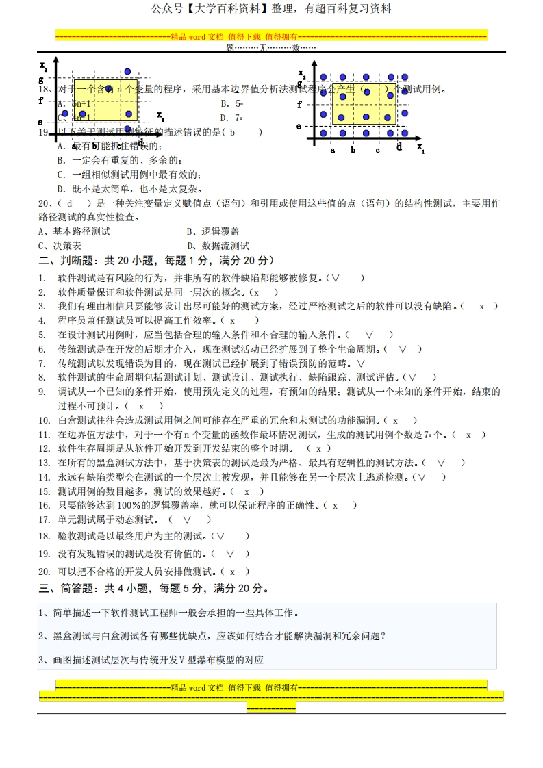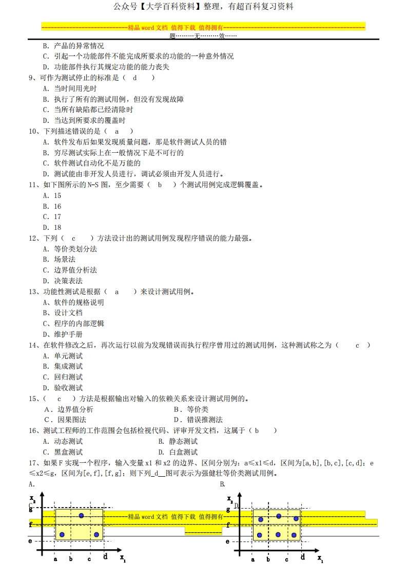 软件测试期末试题A卷及答案最终版猴哥6个月前发布关注私信0.34MB6页06966软件测试期末试题A卷及答案最终版此内容为免费资源,请登录后查看¥0 登录查看免费资源 第1页 / 共6页 第2页 / 共6页 第3页 / 共6页 该文档为免费文档,您可直接下载完整版进行阅读 © 版权声明文章版权归作者所有,未经允许请勿转载。THE END《软件测试》学习资料合集 期末复习 喜欢就支持一下吧点赞66赞赏 分享QQ空间微博QQ好友海报分享复制链接收藏