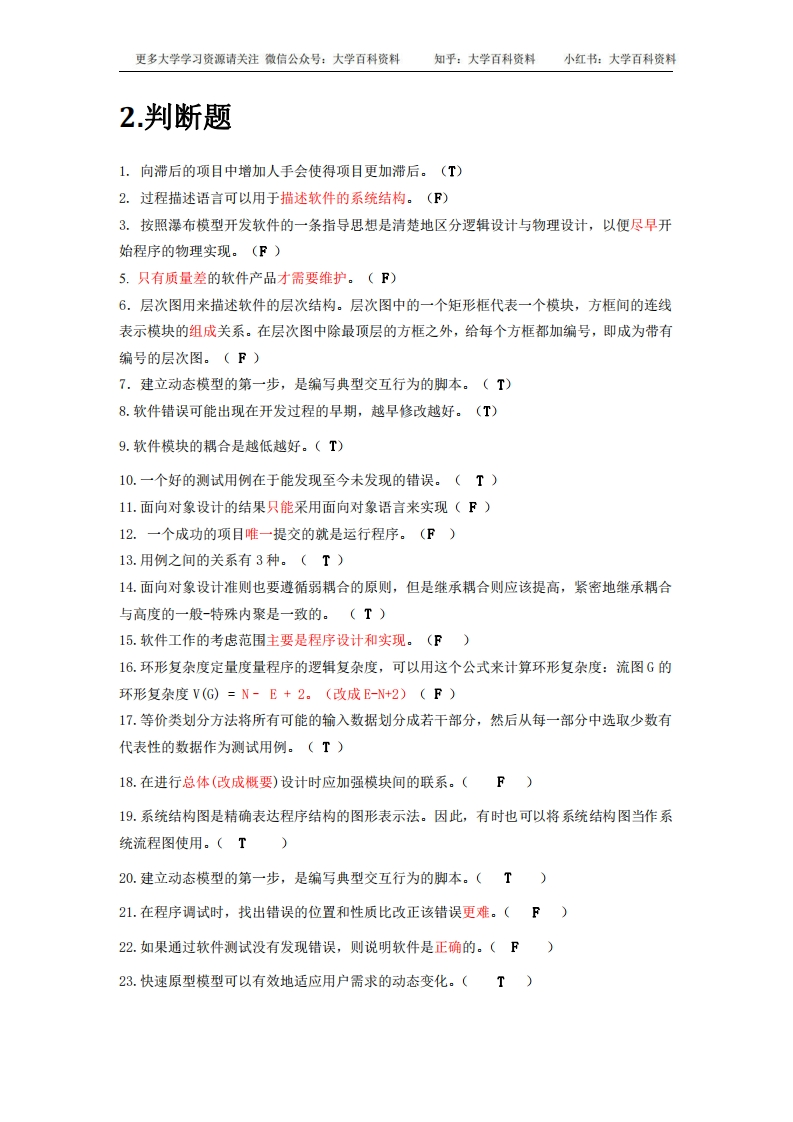 软件工程导论-期末题库(完整版)猴哥6个月前发布关注私信0.60MB14页05737软件工程导论-期末题库(完整版)此内容为免费资源,请登录后查看¥0 登录查看免费资源 第1页 / 共14页 第2页 / 共14页 第3页 / 共14页 该文档为免费文档,您可直接下载完整版进行阅读 © 版权声明文章版权归作者所有,未经允许请勿转载。THE END《软件工程导论》学习资料合集 期末复习 喜欢就支持一下吧点赞37赞赏 分享QQ空间微博QQ好友海报分享复制链接收藏