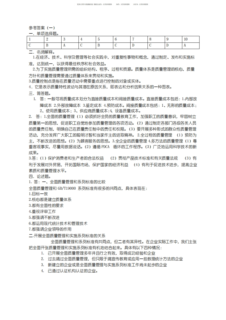 质量管理学期末试题一及答案猴哥6个月前发布关注私信84.76KB2页04014质量管理学期末试题一及答案此内容为免费资源,请登录后查看¥0 登录查看免费资源 第1页 / 共2页 第2页 / 共2页 已完成全部阅读,共2页 © 版权声明文章版权归作者所有,未经允许请勿转载。THE END《质量管理学》学习资料合集 期末复习 喜欢就支持一下吧点赞14赞赏 分享QQ空间微博QQ好友海报分享复制链接收藏