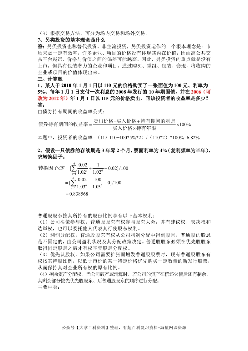 《证券投资学(第四版)》习题及答案猴哥6个月前发布关注私信0.31MB20页07713《证券投资学(第四版)》习题及答案此内容为免费资源,请登录后查看¥0 登录查看免费资源 第1页 / 共20页 第2页 / 共20页 第3页 / 共20页 该文档为免费文档,您可直接下载完整版进行阅读 © 版权声明文章版权归作者所有,未经允许请勿转载。THE END《证券投资学》学习资料合集 期末复习 喜欢就支持一下吧点赞13赞赏 分享QQ空间微博QQ好友海报分享复制链接收藏