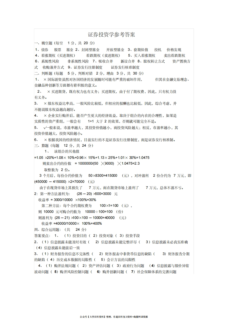 证券投资学试题及答案(20201124223752)猴哥6个月前发布关注私信76.47KB3页03435证券投资学试题及答案(20201124223752)此内容为免费资源,请登录后查看¥0 登录查看免费资源 第1页 / 共3页 第2页 / 共3页 第3页 / 共3页 已完成全部阅读,共3页 © 版权声明文章版权归作者所有,未经允许请勿转载。THE END《证券投资学》学习资料合集 期末复习 喜欢就支持一下吧点赞35赞赏 分享QQ空间微博QQ好友海报分享复制链接收藏