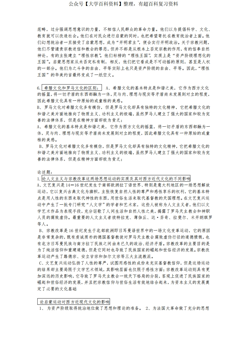 西方文化概论期末考试复习猴哥6个月前发布关注私信0.34MB5页03659西方文化概论期末考试复习此内容为免费资源,请登录后查看¥0 登录查看免费资源 第1页 / 共5页 第2页 / 共5页 第3页 / 共5页 该文档为免费文档,您可直接下载完整版进行阅读 © 版权声明文章版权归作者所有,未经允许请勿转载。THE END《西方文化史》学习资料合集 期末复习 喜欢就支持一下吧点赞59赞赏 分享QQ空间微博QQ好友海报分享复制链接收藏