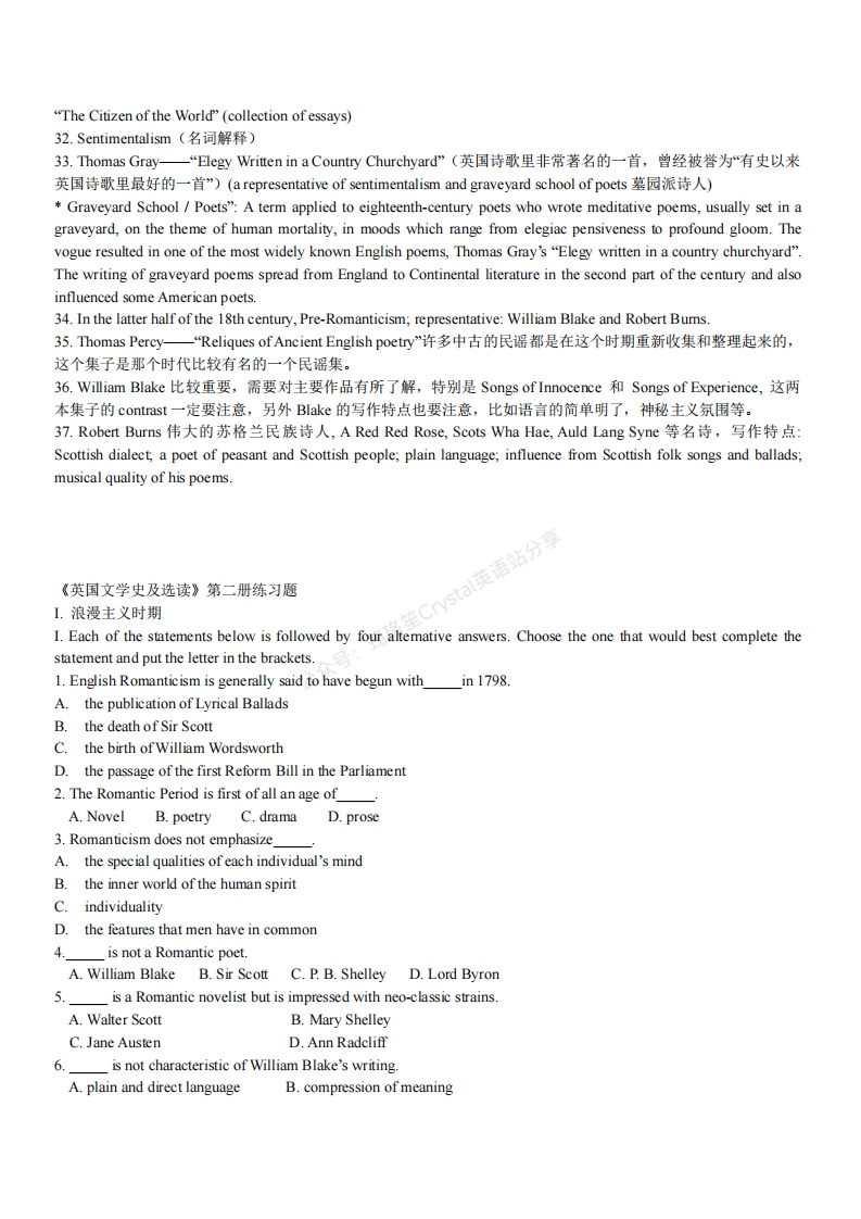 英国文学史及选读__复习要点总结及习题