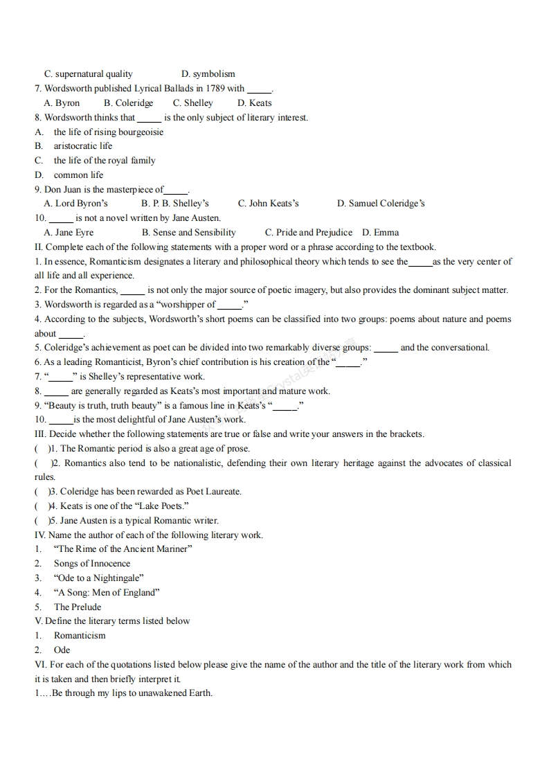 英国文学史及选读__复习要点总结及习题-学习资源网 - 分享优质学习资料