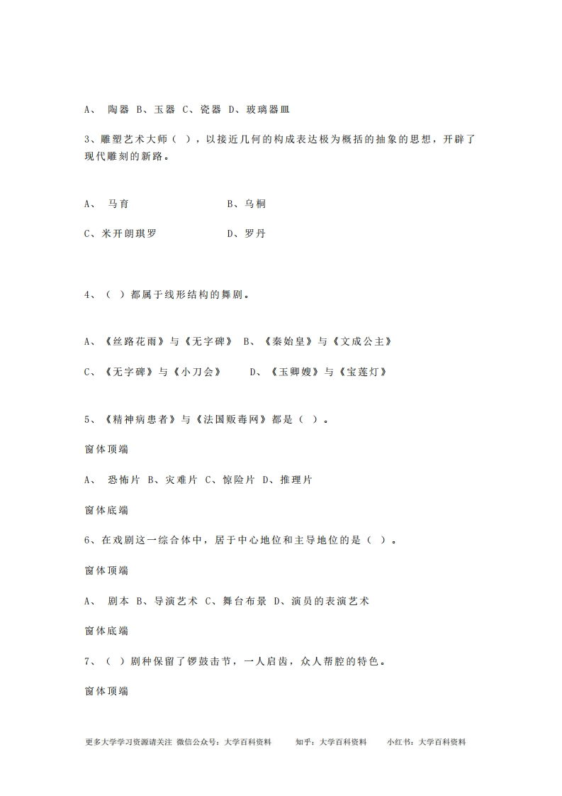 艺术学概论考试试题及参考答案一猴哥6个月前发布关注私信0.19MB7页03552艺术学概论考试试题及参考答案一此内容为免费资源,请登录后查看¥0 登录查看免费资源 第1页 / 共7页 第2页 / 共7页 第3页 / 共7页 该文档为免费文档,您可直接下载完整版进行阅读 © 版权声明文章版权归作者所有,未经允许请勿转载。THE END《艺术学概论》学习资料合集 期末复习 喜欢就支持一下吧点赞52赞赏 分享QQ空间微博QQ好友海报分享复制链接收藏
