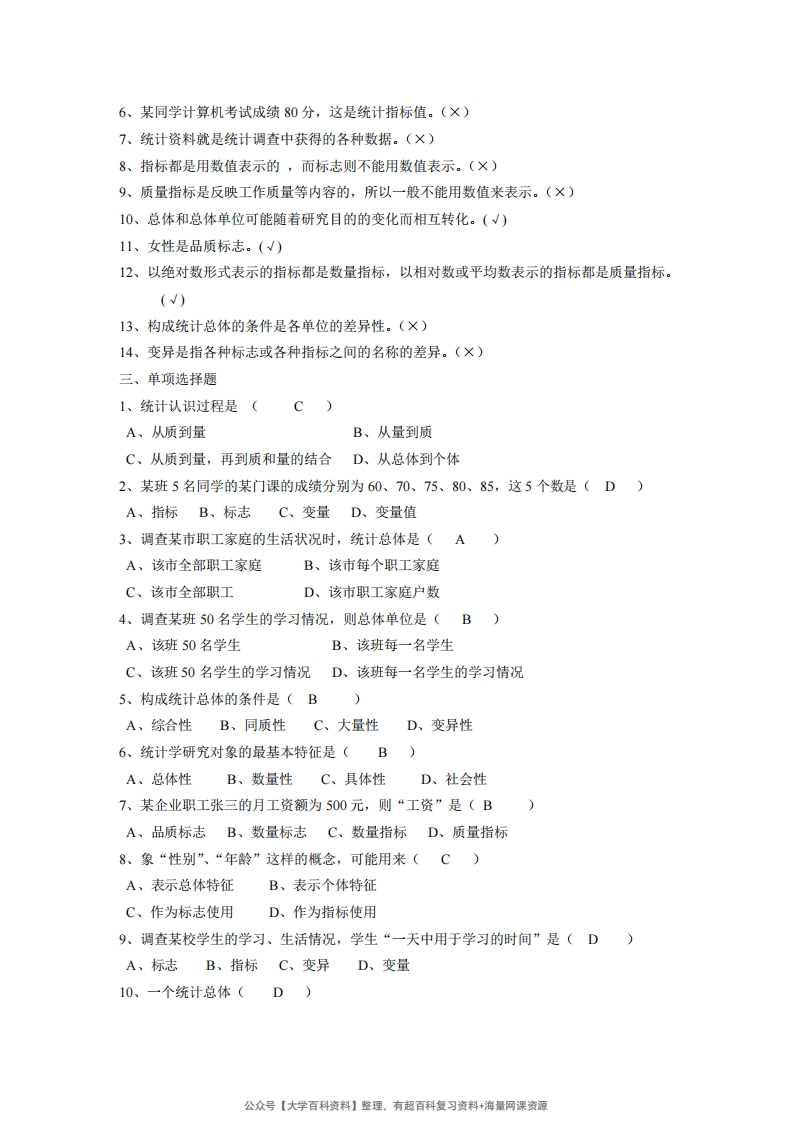 统计学试题库(含答案)(1)猴哥6个月前发布关注私信0.67MB41页03030统计学试题库(含答案)(1)此内容为免费资源,请登录后查看¥0 登录查看免费资源 第1页 / 共41页 第2页 / 共41页 第3页 / 共41页 该文档为免费文档,您可直接下载完整版进行阅读 © 版权声明文章版权归作者所有,未经允许请勿转载。THE END《统计学》学习资料合集 期末复习 喜欢就支持一下吧点赞30赞赏 分享QQ空间微博QQ好友海报分享复制链接收藏