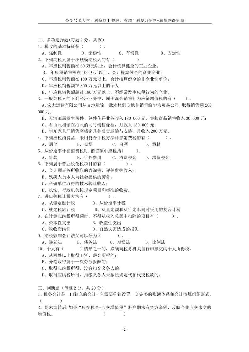 税务会计试题及其答案A.B卷猴哥6个月前发布关注私信58.50KB12页08429税务会计试题及其答案A.B卷此内容为免费资源,请登录后查看¥0 登录查看免费资源 第1页 / 共12页 第2页 / 共12页 第3页 / 共12页 该文档为免费文档,您可直接下载完整版进行阅读 © 版权声明文章版权归作者所有,未经允许请勿转载。THE END《税务会计》学习资料合集 期末复习 喜欢就支持一下吧点赞29赞赏 分享QQ空间微博QQ好友海报分享复制链接收藏