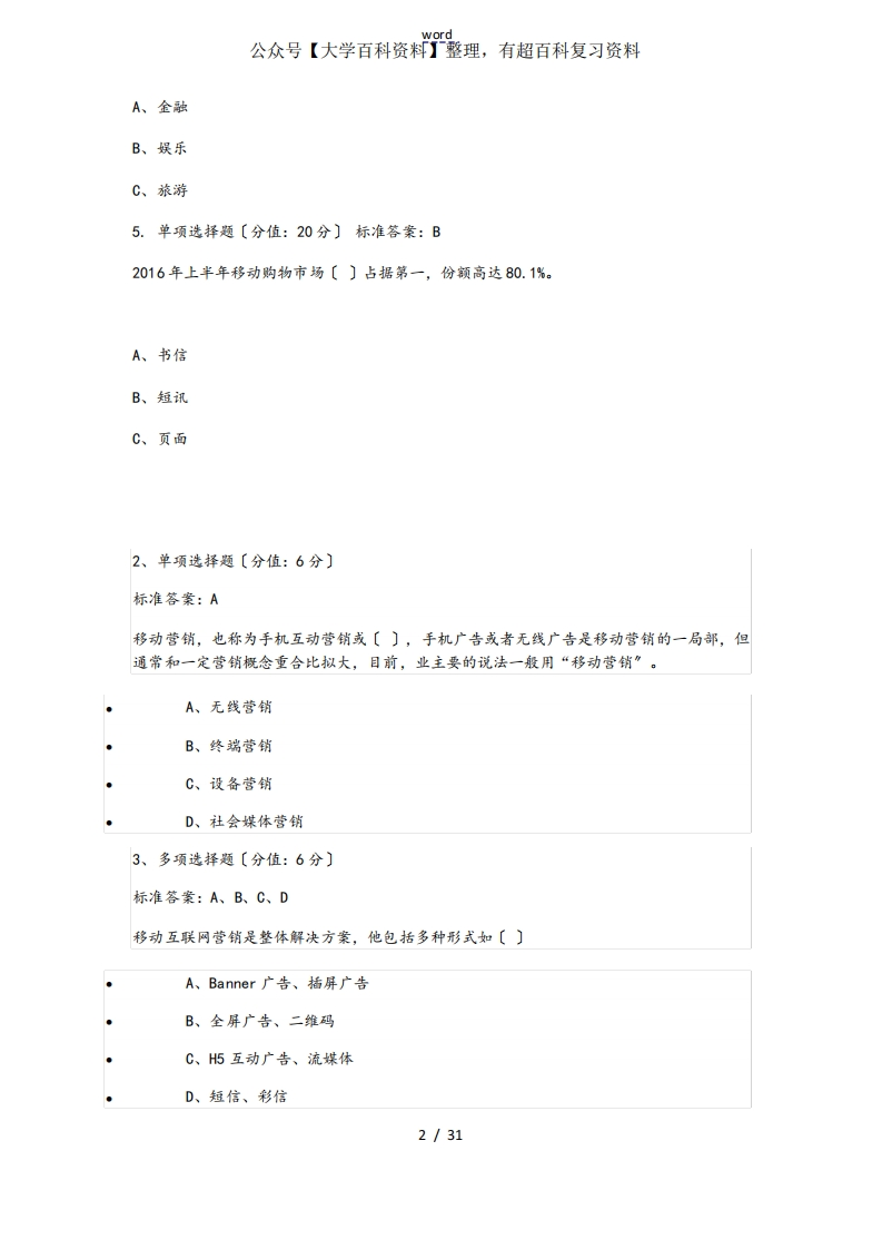 移动电子商务精彩试题猴哥6个月前发布关注私信1.60MB31页04240移动电子商务精彩试题此内容为免费资源,请登录后查看¥0 登录查看免费资源 第1页 / 共31页 第2页 / 共31页 第3页 / 共31页 该文档为免费文档,您可直接下载完整版进行阅读 © 版权声明文章版权归作者所有,未经允许请勿转载。THE END《移动电子商务》学习资料合集 期末复习 喜欢就支持一下吧点赞40赞赏 分享QQ空间微博QQ好友海报分享复制链接收藏
