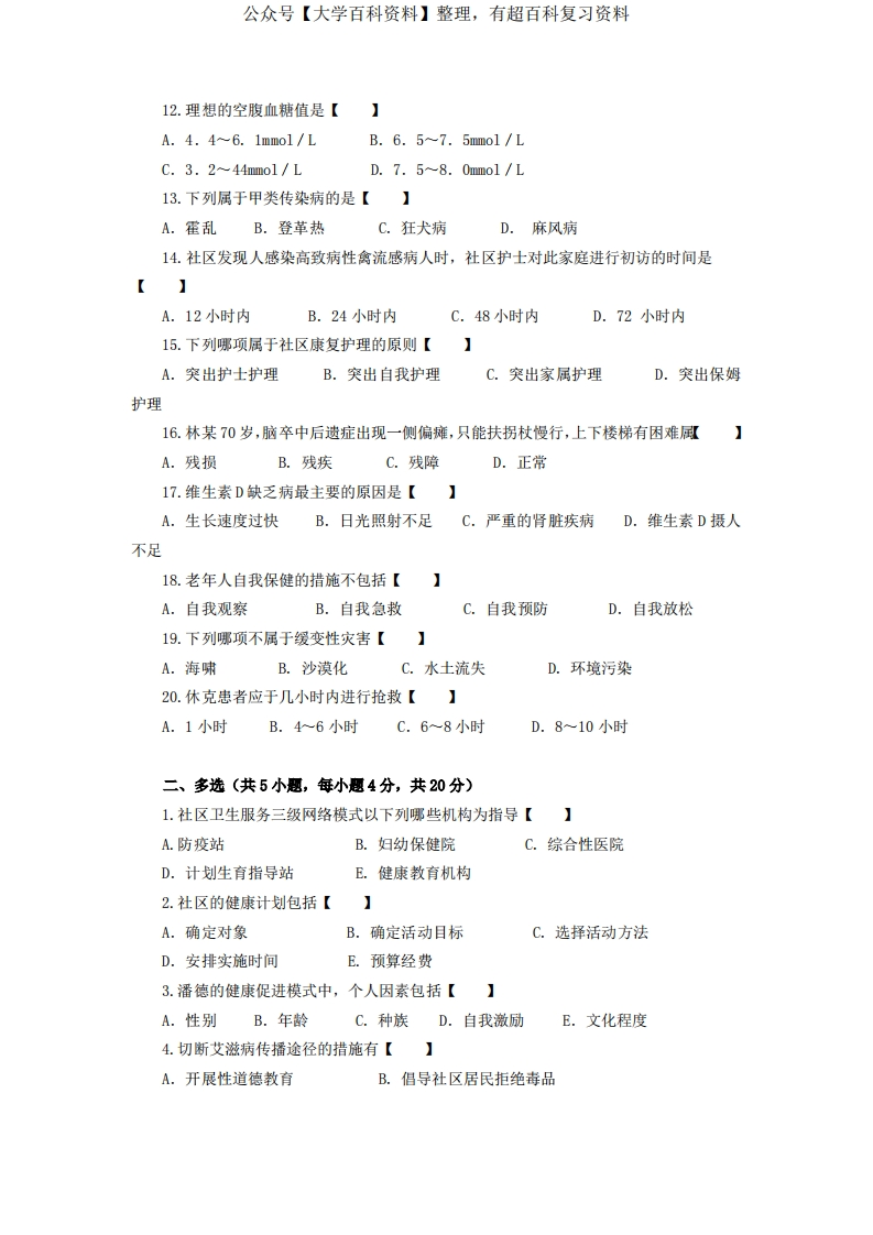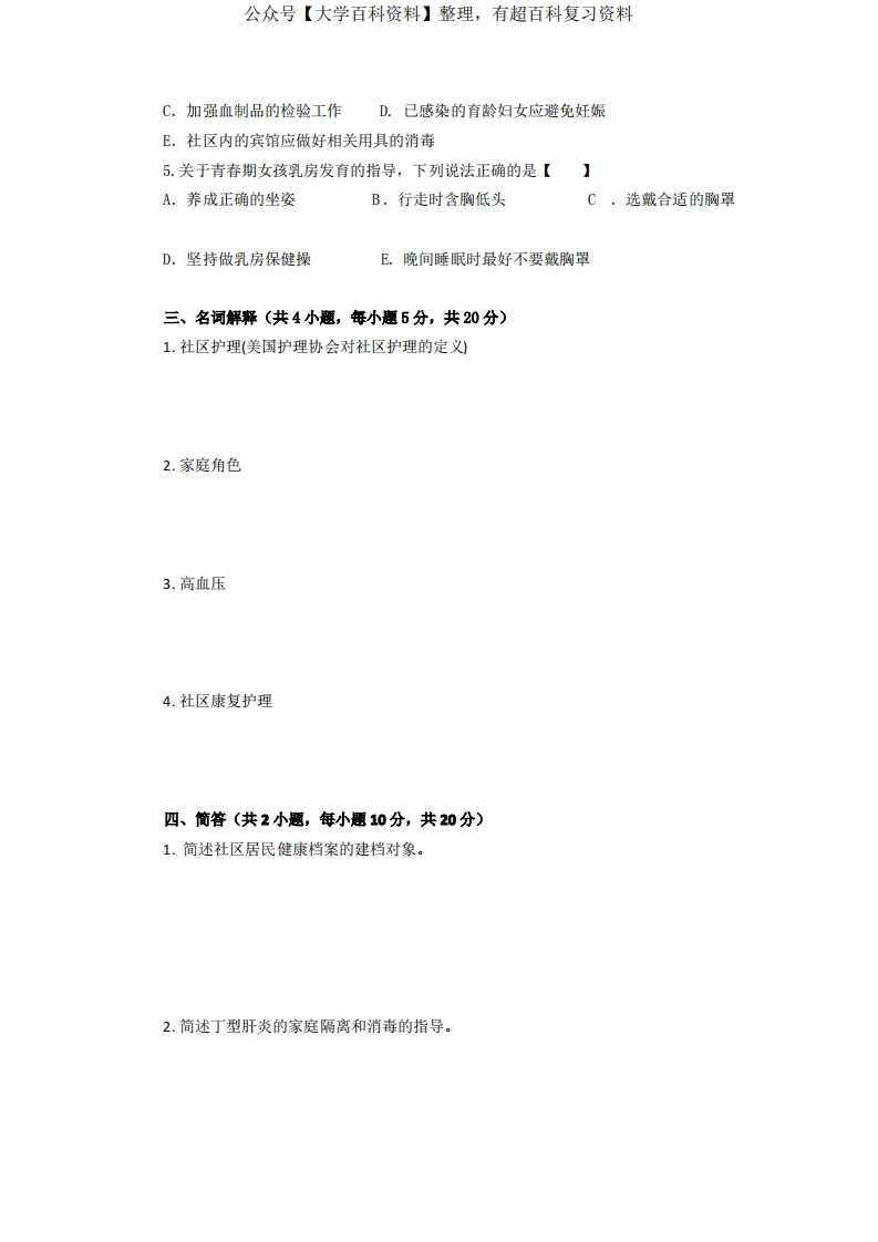 《社区护理学社区护理学实践与指导》期末考试试卷附答案猴哥6个月前发布关注私信0.23MB4页05557《社区护理学社区护理学实践与指导》期末考试试卷附答案此内容为免费资源,请登录后查看¥0 登录查看免费资源 第1页 / 共4页 第2页 / 共4页 第3页 / 共4页 该文档为免费文档,您可直接下载完整版进行阅读 © 版权声明文章版权归作者所有,未经允许请勿转载。THE END《社区护理学实践与指导》学习资料合集 期末复习 喜欢就支持一下吧点赞57赞赏 分享QQ空间微博QQ好友海报分享复制链接收藏
