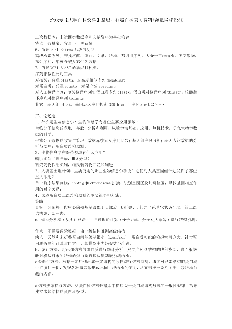 生物信息学复习题-学习资源网 - 分享优质学习资料
