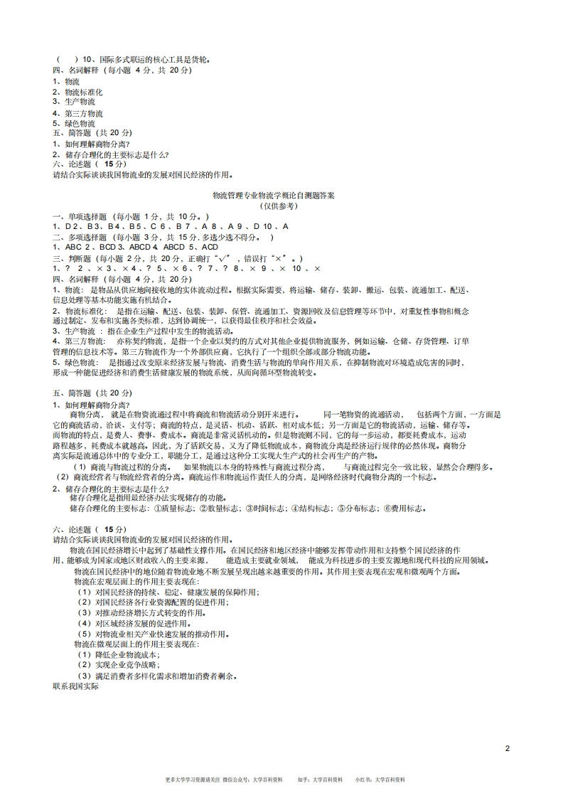 物流学概论试题及答案-学习资源网 - 分享优质学习资料
