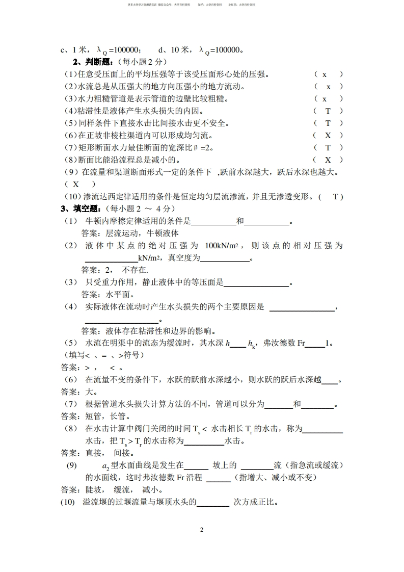 水力学期末考试复习题及答案猴哥6个月前发布关注私信1.36MB24页07550水力学期末考试复习题及答案此内容为免费资源,请登录后查看¥0 登录查看免费资源 第1页 / 共24页 第2页 / 共24页 第3页 / 共24页 该文档为免费文档,您可直接下载完整版进行阅读 © 版权声明文章版权归作者所有,未经允许请勿转载。THE END《水力学》学习资料合集 期末复习 喜欢就支持一下吧点赞50赞赏 分享QQ空间微博QQ好友海报分享复制链接收藏