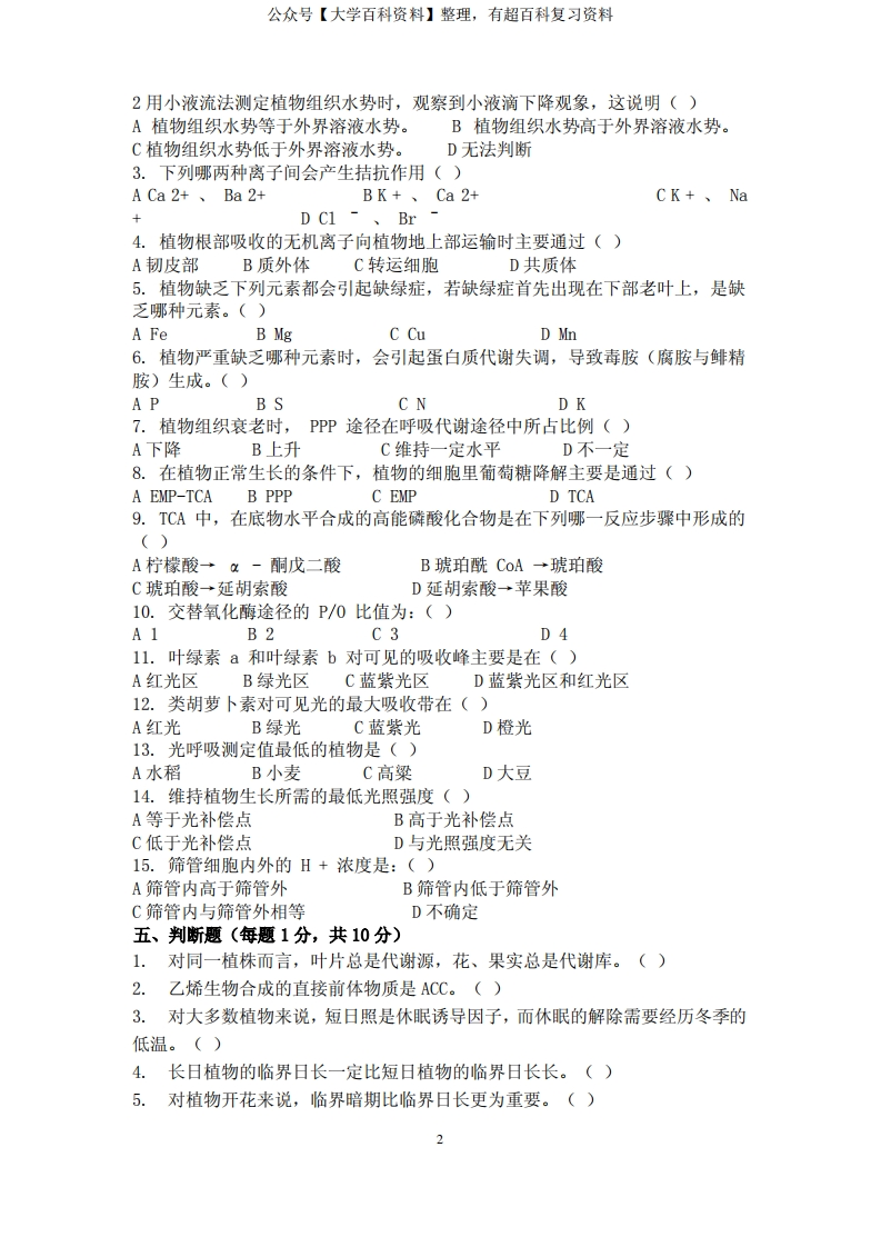 植物生理学试卷及答案猴哥6个月前发布关注私信2.26MB46页03926植物生理学试卷及答案此内容为免费资源,请登录后查看¥0 登录查看免费资源 第1页 / 共46页 第2页 / 共46页 第3页 / 共46页 该文档为免费文档,您可直接下载完整版进行阅读 © 版权声明文章版权归作者所有,未经允许请勿转载。THE END《植物生理生化》学习资料合集 期末复习 喜欢就支持一下吧点赞26赞赏 分享QQ空间微博QQ好友海报分享复制链接收藏
