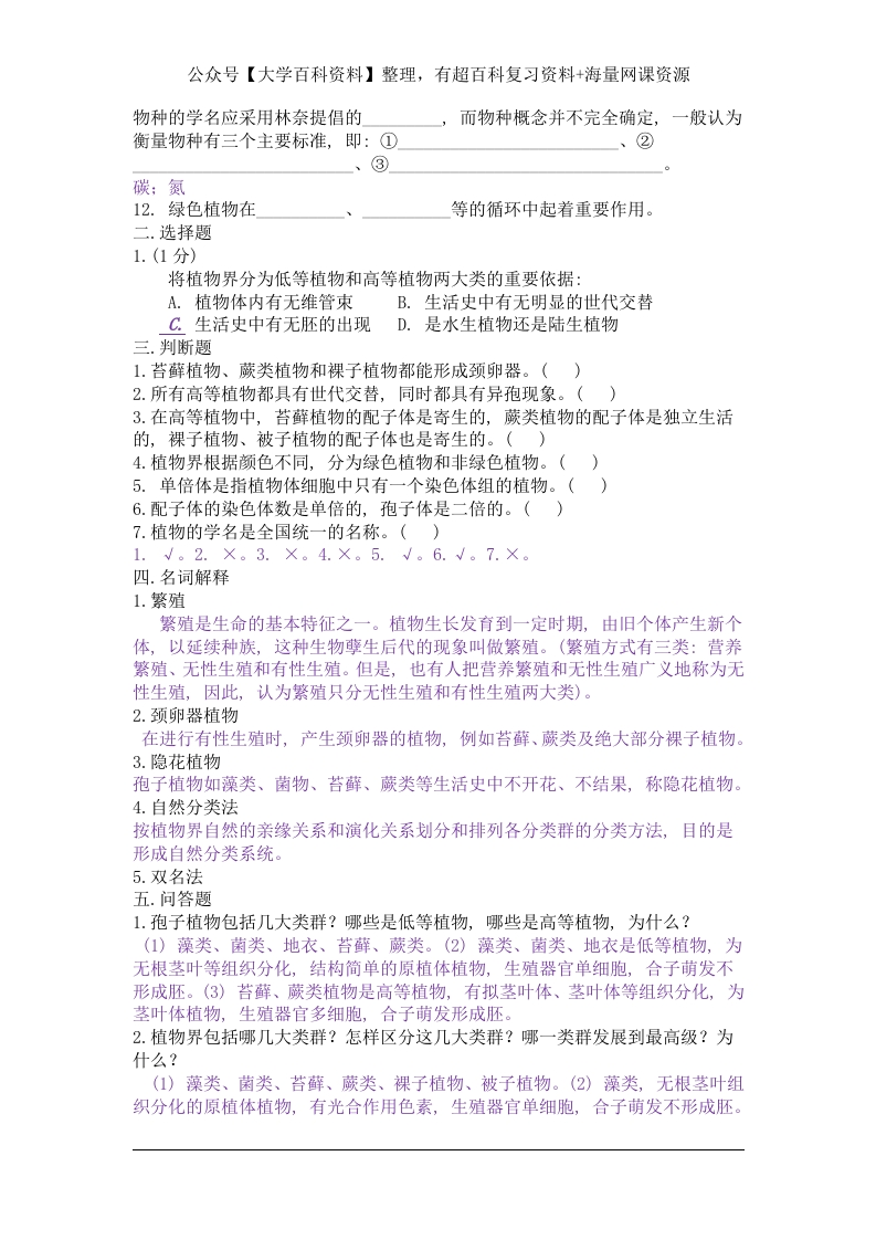 植物学总复习题(附答案)猴哥6个月前发布关注私信0.40MB72页06745植物学总复习题(附答案)此内容为免费资源,请登录后查看¥0 登录查看免费资源 第1页 / 共72页 第2页 / 共72页 第3页 / 共72页 该文档为免费文档,您可直接下载完整版进行阅读 © 版权声明文章版权归作者所有,未经允许请勿转载。THE END《植物学》学习资料合集 期末复习 喜欢就支持一下吧点赞45赞赏 分享QQ空间微博QQ好友海报分享复制链接收藏