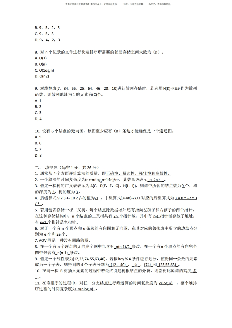 数据结构-Python语言描述试卷(一)附答案猴哥3个月前更新关注私信0.23MB5页08222数据结构-Python语言描述试卷(一)附答案此内容为免费资源,请登录后查看¥0 登录查看免费资源 第1页 / 共5页 第2页 / 共5页 第3页 / 共5页 该文档为免费文档,您可直接下载完整版进行阅读 © 版权声明文章版权归作者所有,未经允许请勿转载。THE END《数据结构(python)》学习资料合集 期末复习 喜欢就支持一下吧点赞22赞赏 分享QQ空间微博QQ好友海报分享复制链接收藏