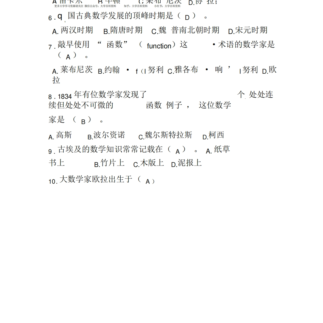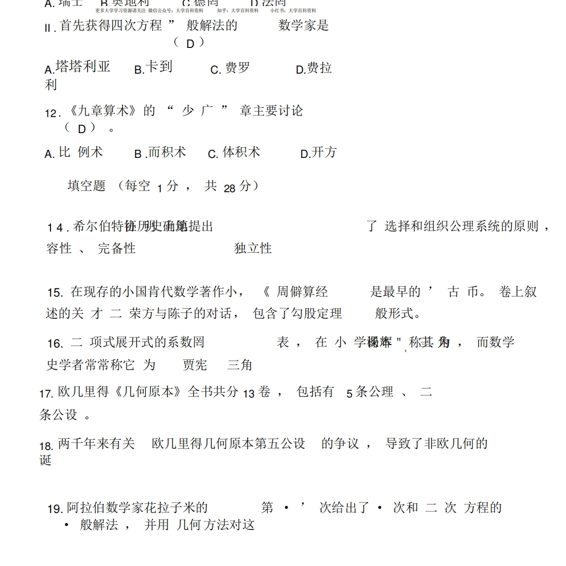 数学史试题及标准答案猴哥6个月前发布关注私信0.91MB32页03519数学史试题及标准答案此内容为免费资源,请登录后查看¥0 登录查看免费资源 第1页 / 共32页 第2页 / 共32页 第3页 / 共32页 该文档为免费文档,您可直接下载完整版进行阅读 © 版权声明文章版权归作者所有,未经允许请勿转载。THE END《数学史概论》学习资料合集 期末复习 喜欢就支持一下吧点赞19赞赏 分享QQ空间微博QQ好友海报分享复制链接收藏