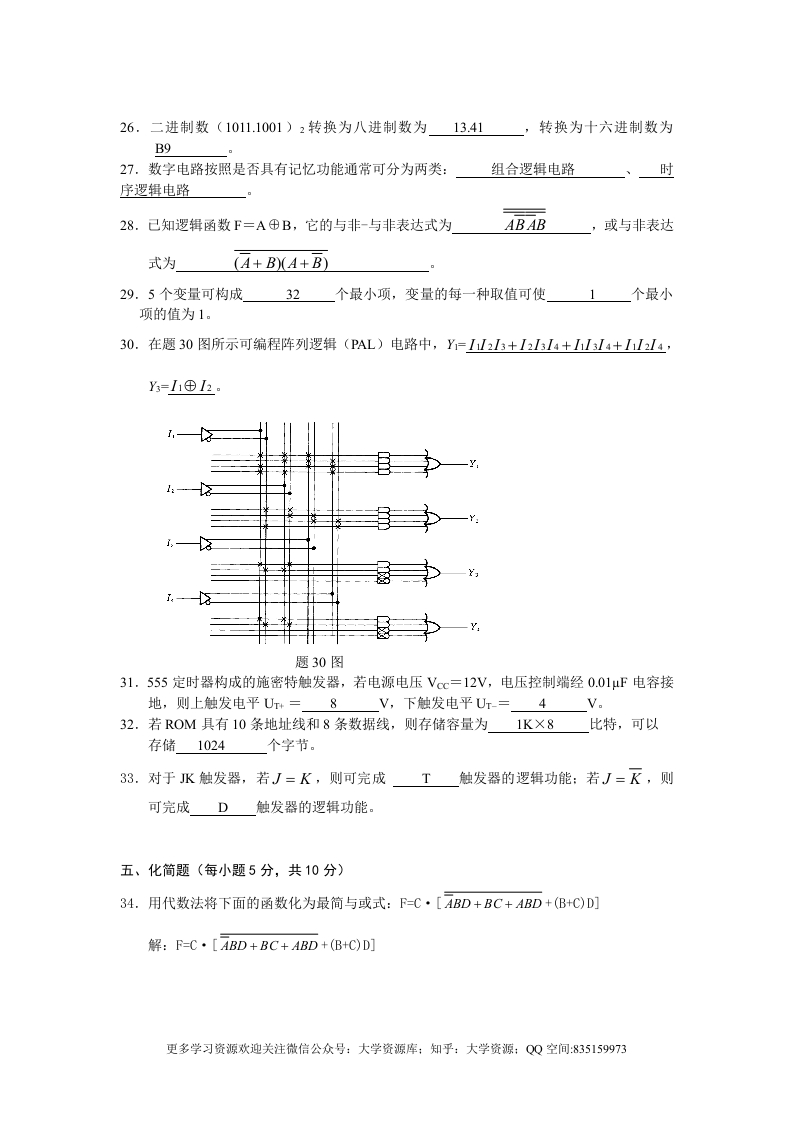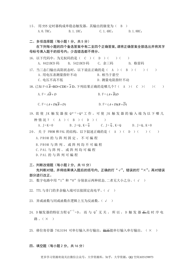 数字电子技术试卷及答案-学习资源网 - 分享优质学习资料