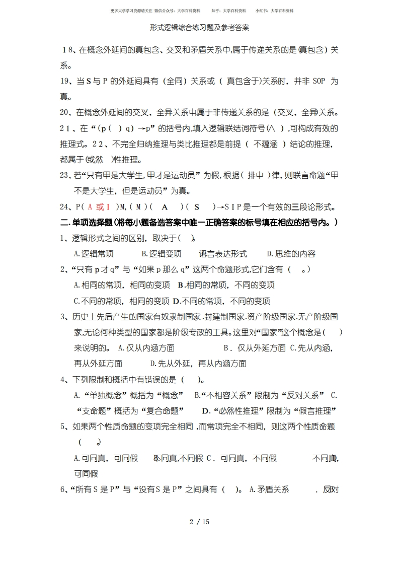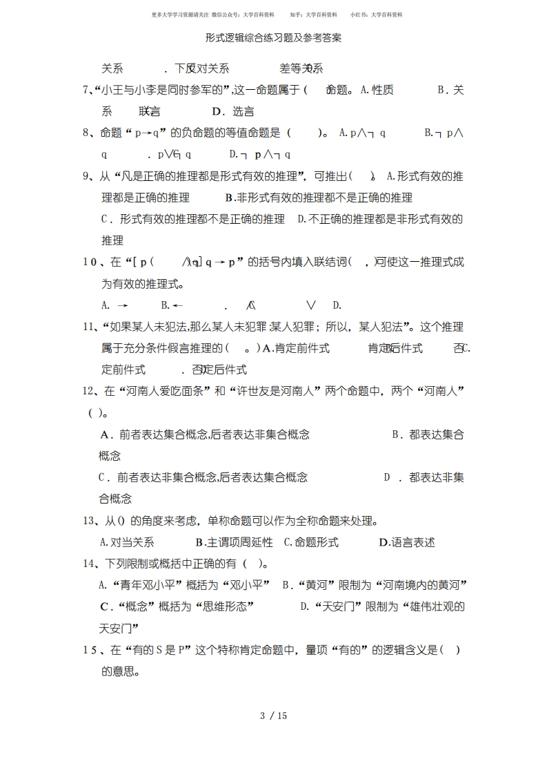 形式逻辑综合练习题及参考答案猴哥6个月前发布关注私信0.18MB15页09854形式逻辑综合练习题及参考答案此内容为免费资源,请登录后查看¥0 登录查看免费资源 第1页 / 共15页 第2页 / 共15页 第3页 / 共15页 该文档为免费文档,您可直接下载完整版进行阅读 © 版权声明文章版权归作者所有,未经允许请勿转载。THE END《形式逻辑》学习资料合集 期末复习 喜欢就支持一下吧点赞54赞赏 分享QQ空间微博QQ好友海报分享复制链接收藏