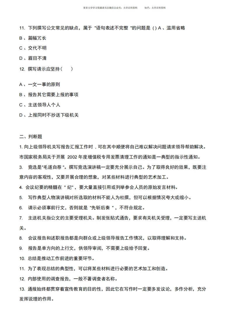 应用文写作基础知识考试题库猴哥6个月前发布关注私信0.17MB4页05155应用文写作基础知识考试题库此内容为免费资源,请登录后查看¥0 登录查看免费资源 第1页 / 共4页 第2页 / 共4页 第3页 / 共4页 该文档为免费文档,您可直接下载完整版进行阅读 © 版权声明文章版权归作者所有,未经允许请勿转载。THE END《应用文写作》学习资料合集 期末复习 喜欢就支持一下吧点赞55赞赏 分享QQ空间微博QQ好友海报分享复制链接收藏