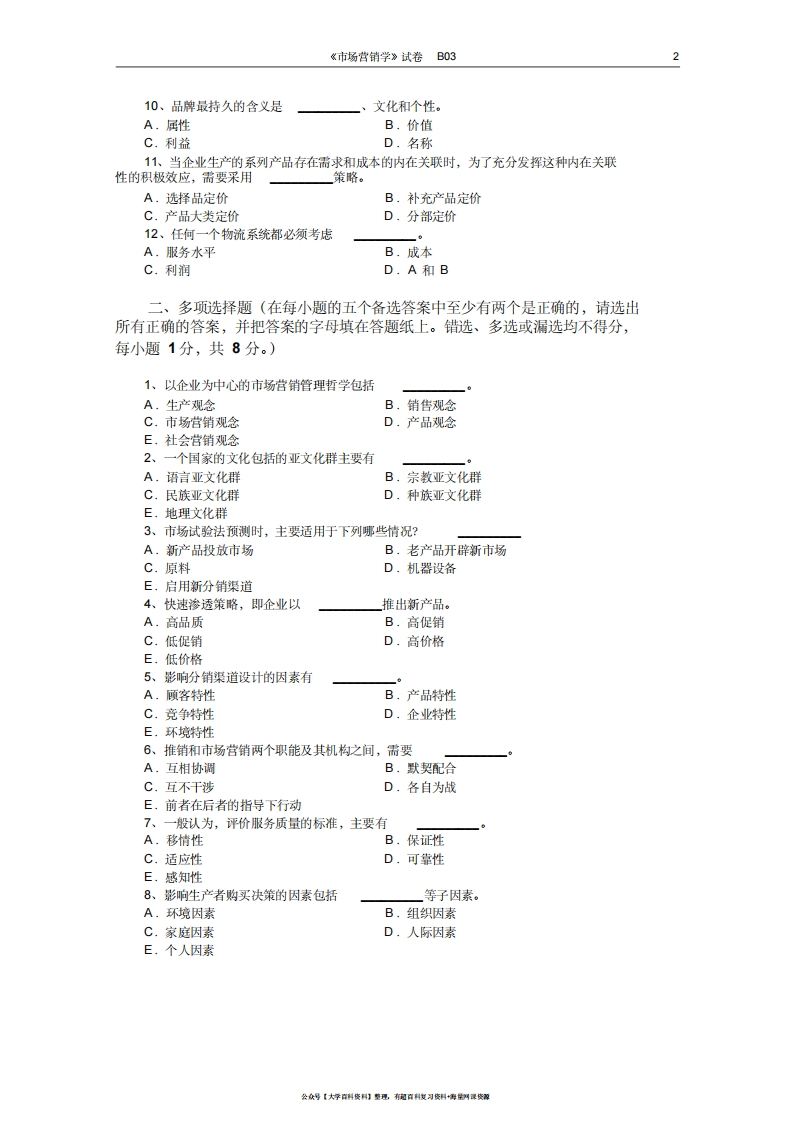 市场营销学试题及其答案(吴健安)(12)猴哥6个月前发布关注私信0.12MB7页04144市场营销学试题及其答案(吴健安)(12)此内容为免费资源,请登录后查看¥0 登录查看免费资源 第1页 / 共7页 第2页 / 共7页 第3页 / 共7页 该文档为免费文档,您可直接下载完整版进行阅读 © 版权声明文章版权归作者所有,未经允许请勿转载。THE END《市场营销学》学习资料合集 期末复习 喜欢就支持一下吧点赞44赞赏 分享QQ空间微博QQ好友海报分享复制链接收藏