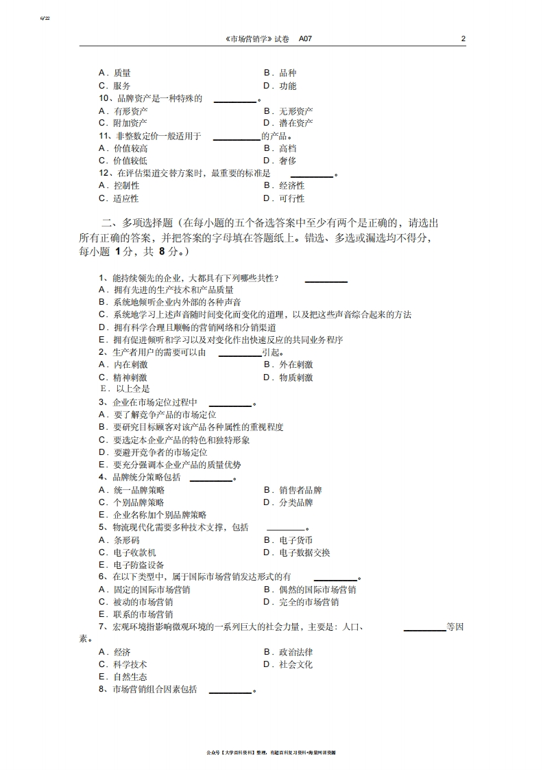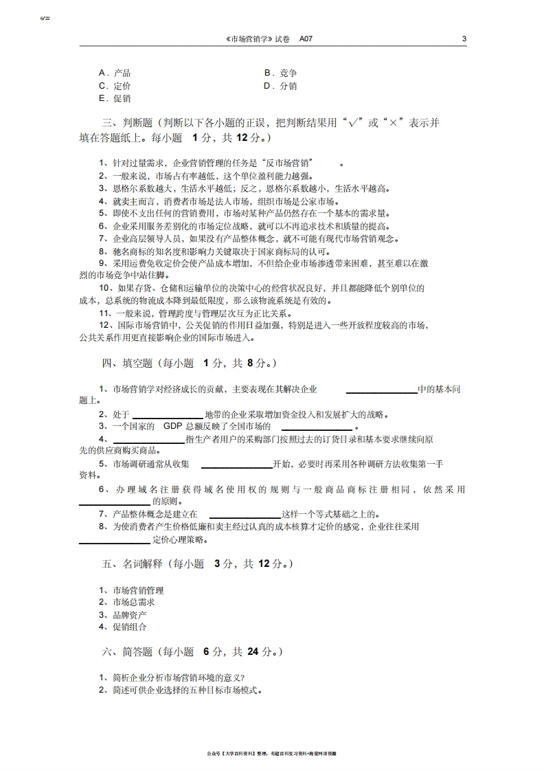 市场营销学试题及其答案(吴健安)(6)猴哥6个月前发布关注私信0.16MB8页09628市场营销学试题及其答案(吴健安)(6)此内容为免费资源,请登录后查看¥0 登录查看免费资源 第1页 / 共8页 第2页 / 共8页 第3页 / 共8页 该文档为免费文档,您可直接下载完整版进行阅读 © 版权声明文章版权归作者所有,未经允许请勿转载。THE END《市场营销学》学习资料合集 期末复习 喜欢就支持一下吧点赞28赞赏 分享QQ空间微博QQ好友海报分享复制链接收藏