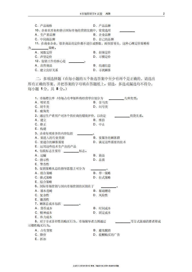 市场营销学试题及其答案(吴健安)(7)猴哥6个月前发布关注私信0.13MB7页03650市场营销学试题及其答案(吴健安)(7)此内容为免费资源,请登录后查看¥0 登录查看免费资源 第1页 / 共7页 第2页 / 共7页 第3页 / 共7页 该文档为免费文档,您可直接下载完整版进行阅读 © 版权声明文章版权归作者所有,未经允许请勿转载。THE END《市场营销学》学习资料合集 期末复习 喜欢就支持一下吧点赞50赞赏 分享QQ空间微博QQ好友海报分享复制链接收藏